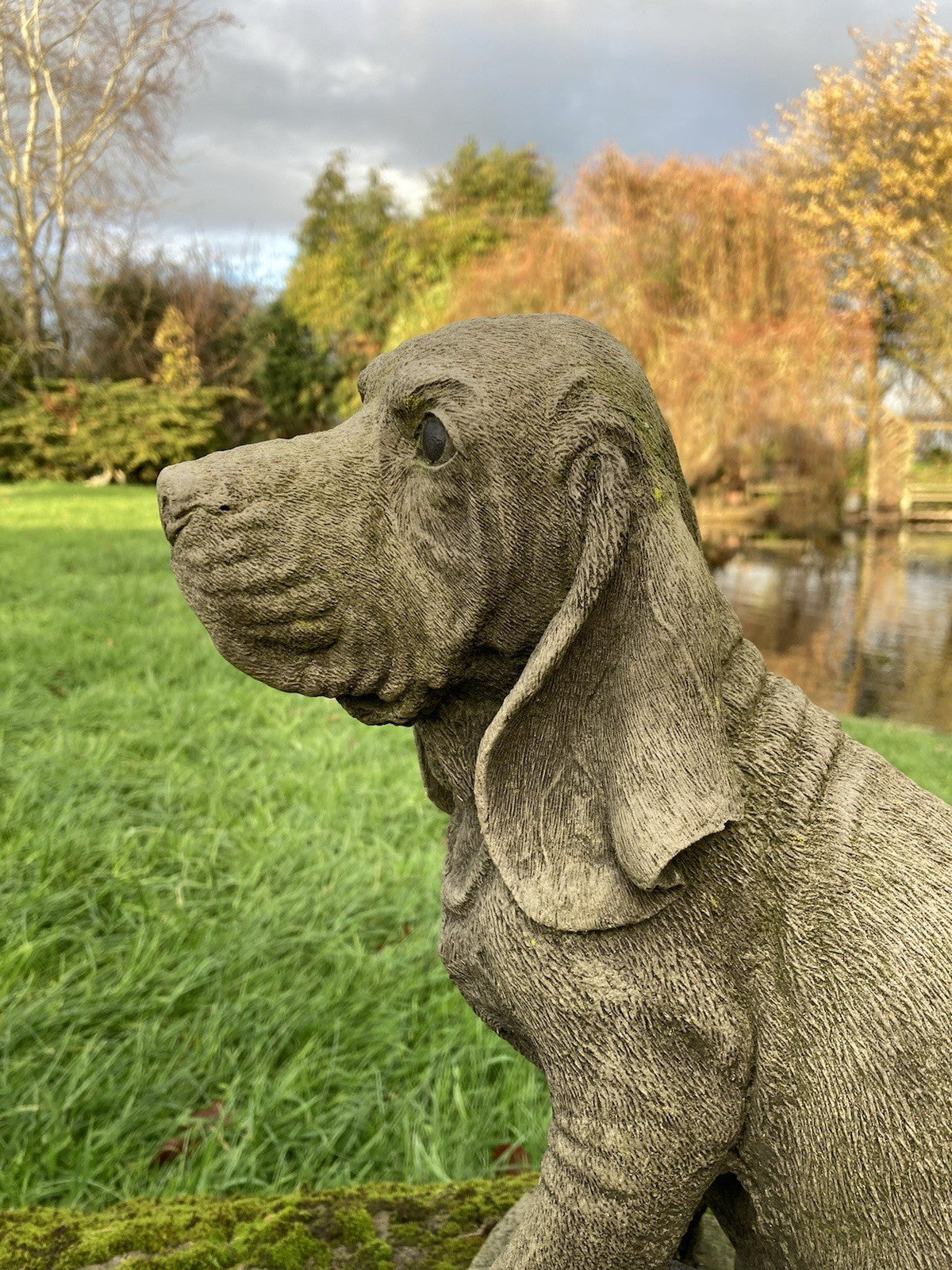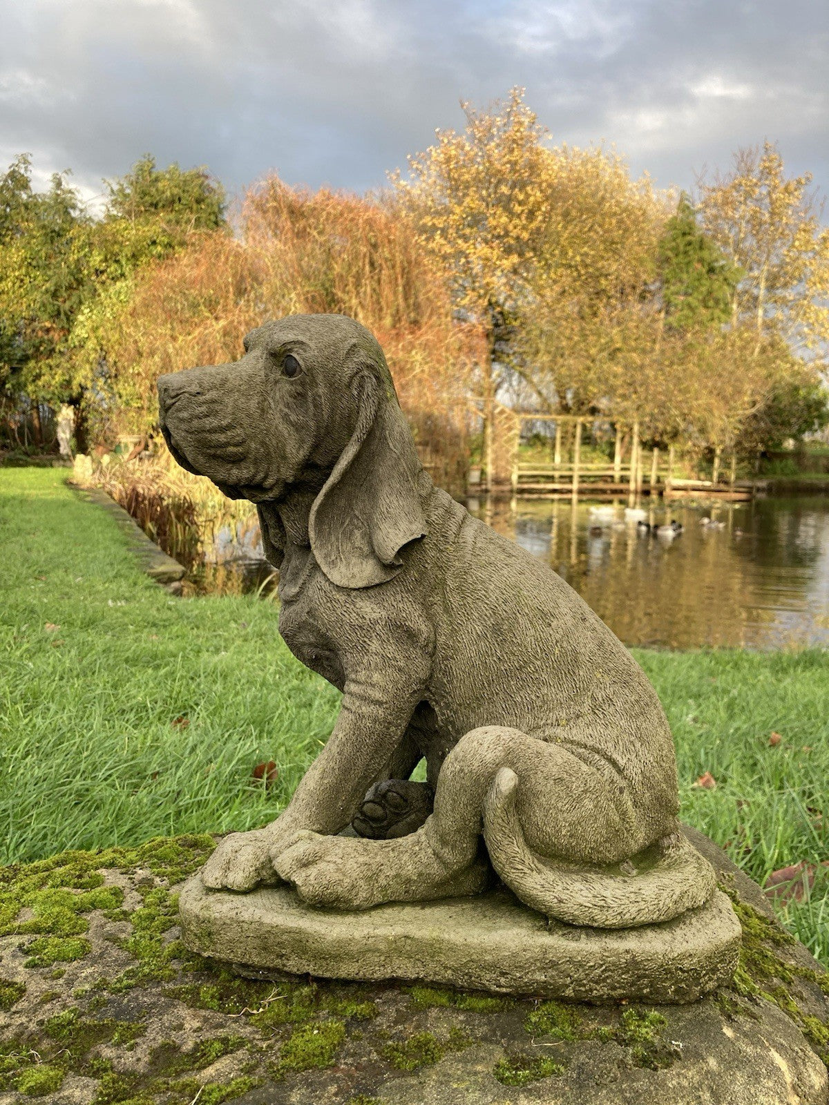 Aged reconstituted stone garden Bloodhound Dog ornament