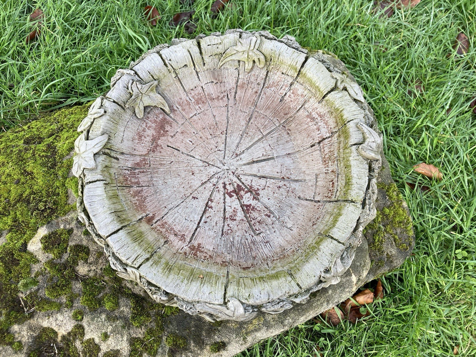 AGED RECONSTITUTED STONE GARDEN IVY BIRD BATH TOP DISH ORNAMENT