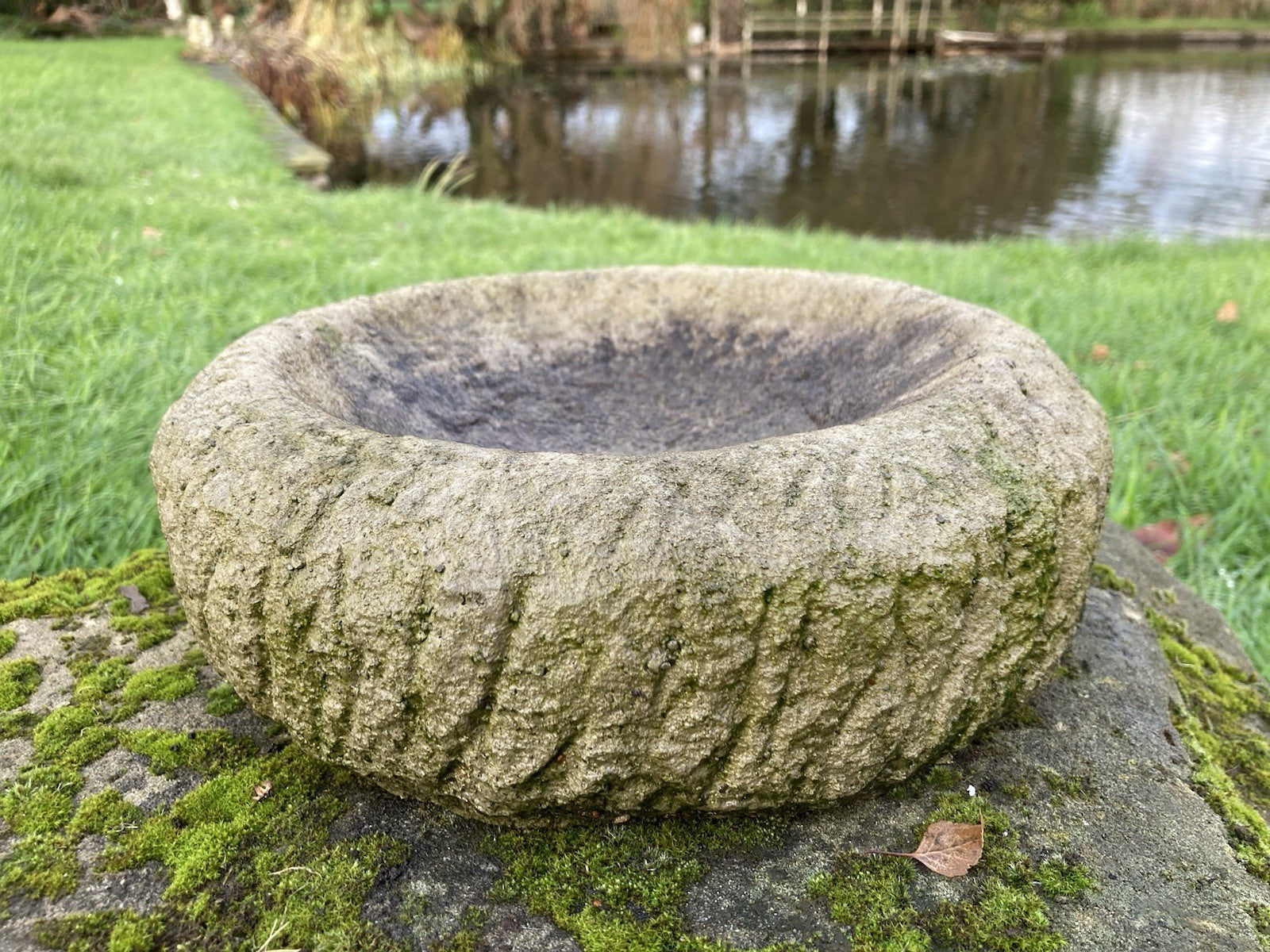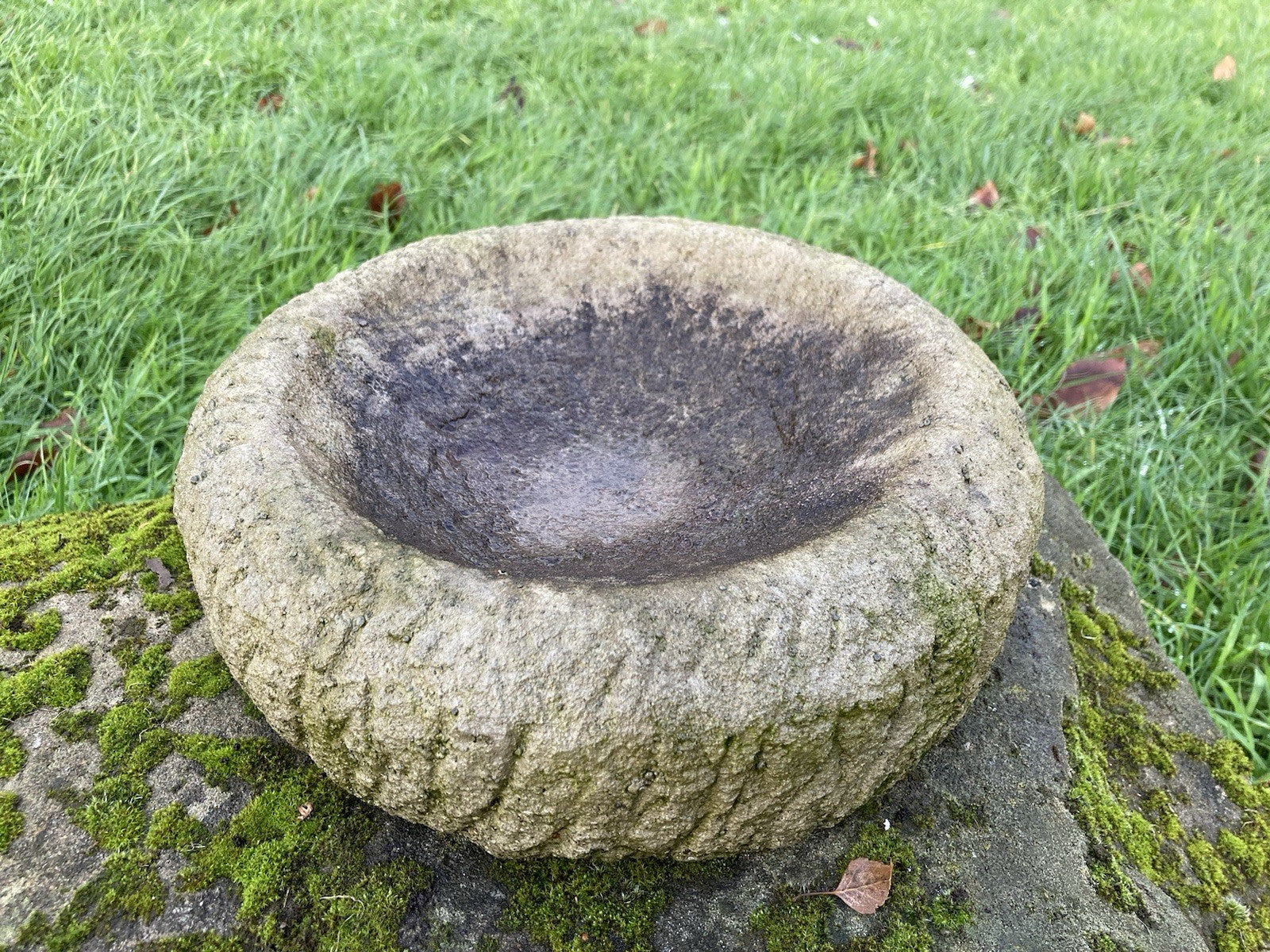 AGED RECONSTITUTED STONE GARDEN ROCKERY DISH / BIRD BATH TOP STATUE ORNAMENT