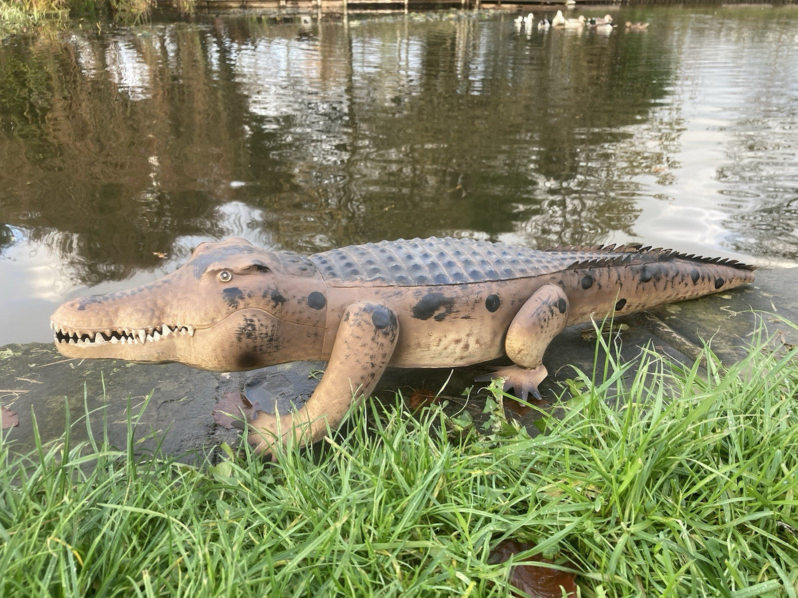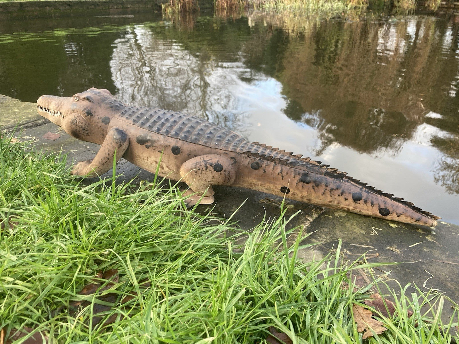 COLOURED METAL ALLIGATOR / CROCODILE POND STATUE GARDEN ORNAMENT