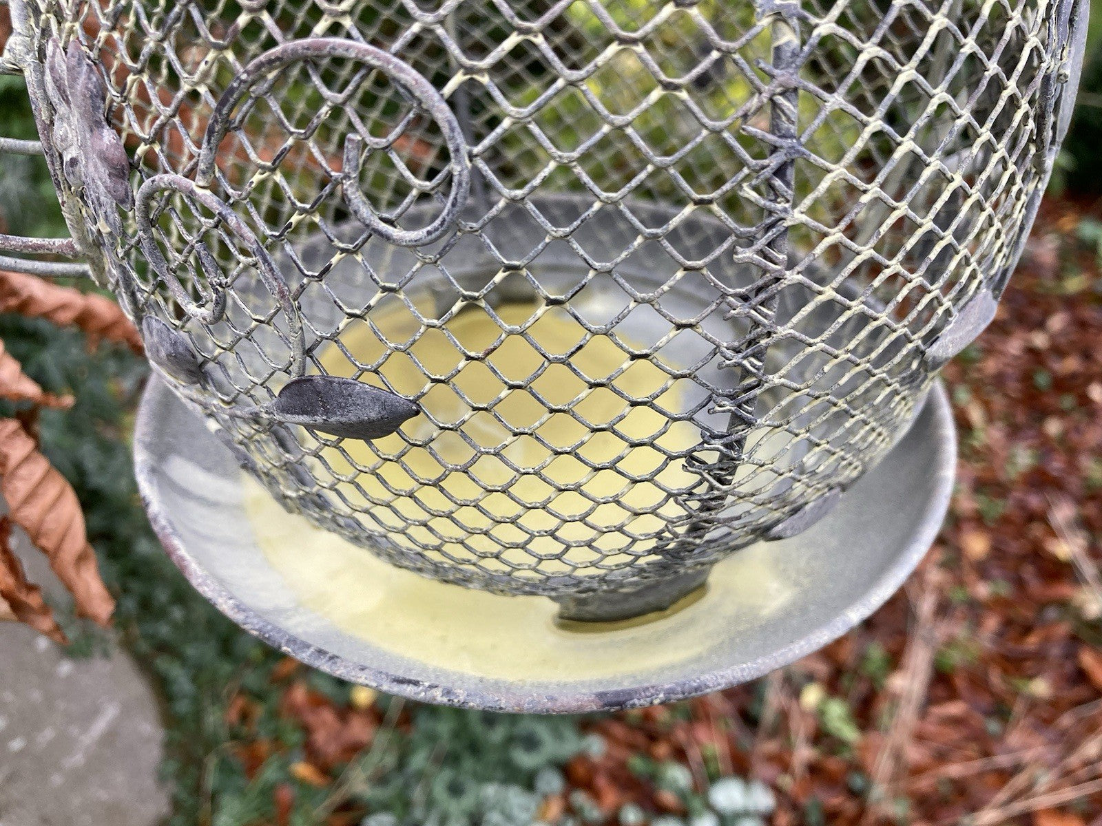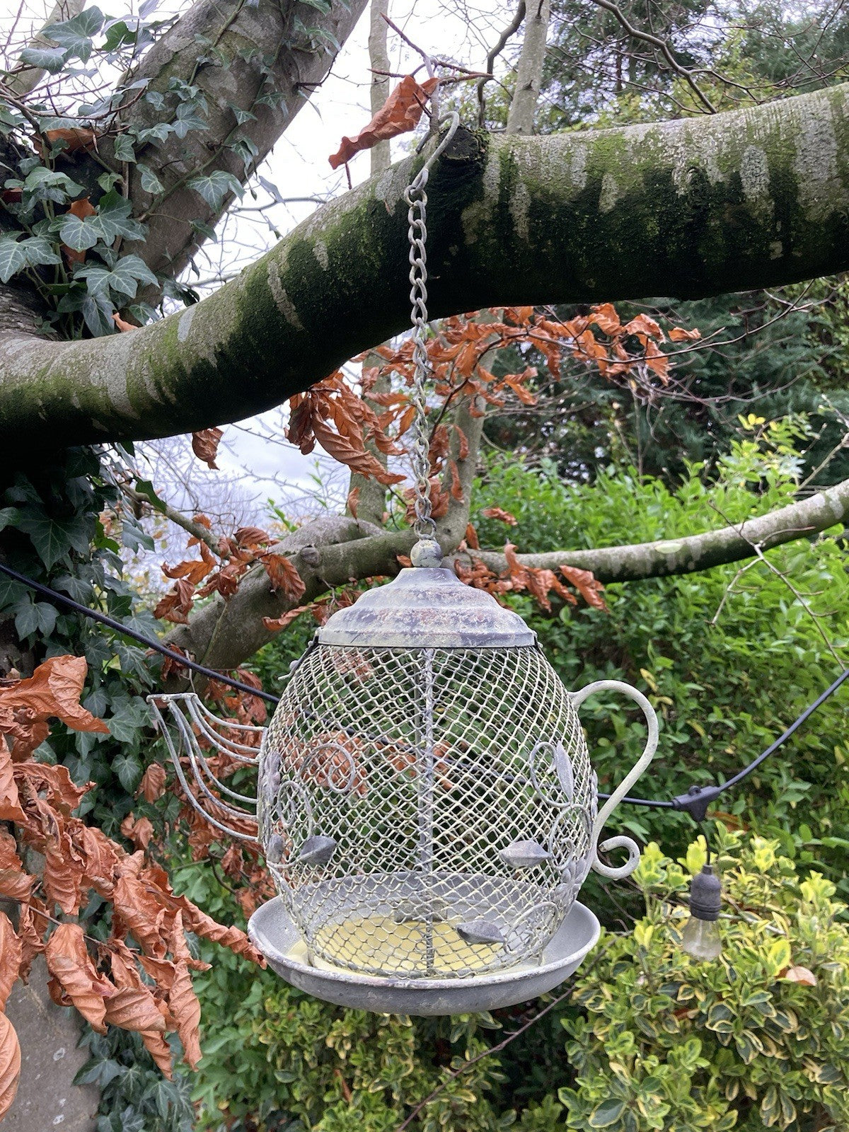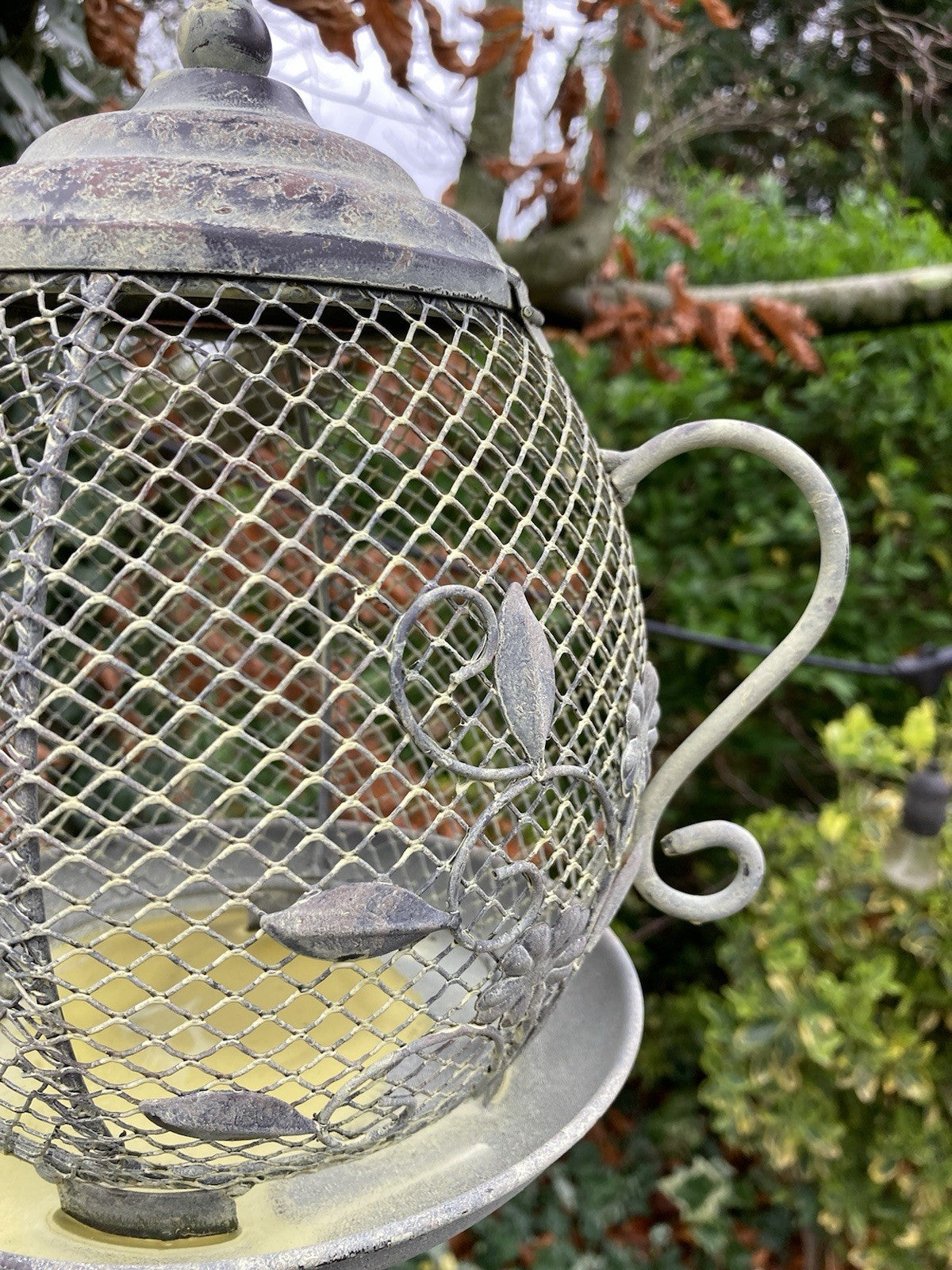 METAL HANGING TEAPOT BIRD FEEDER GARDEN ORNAMENT