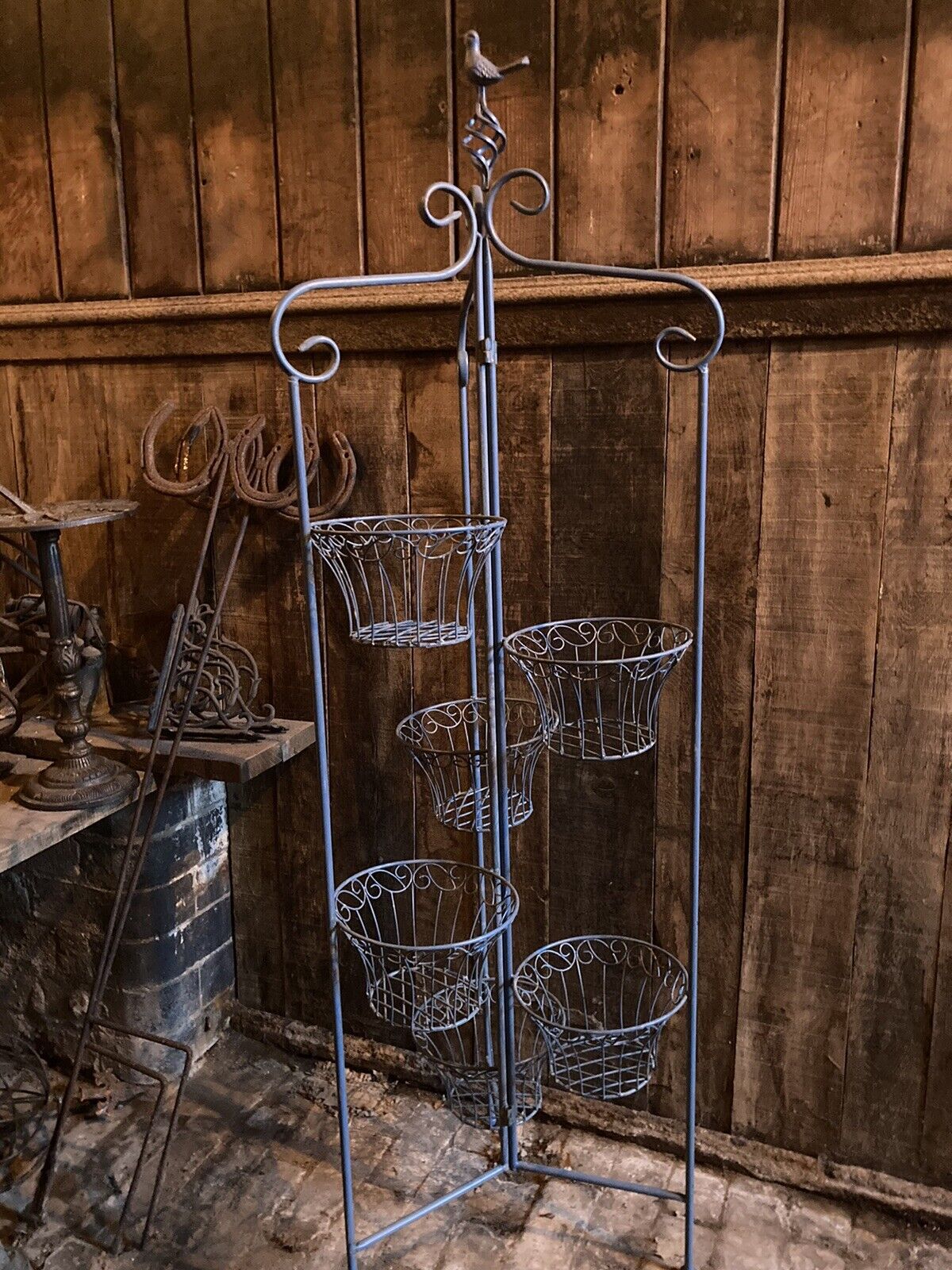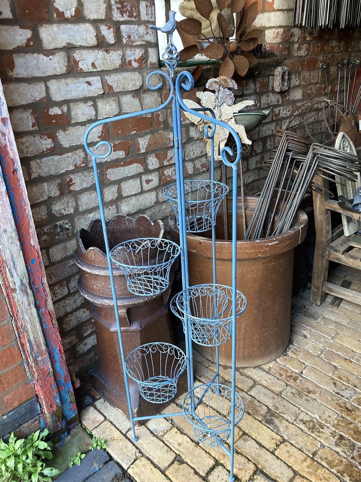 LARGE METAL BLUE FOLDING 6 POT PLANT STAND INDOOR /GARDEN ORNAMENT-LIGHT WEIGHT