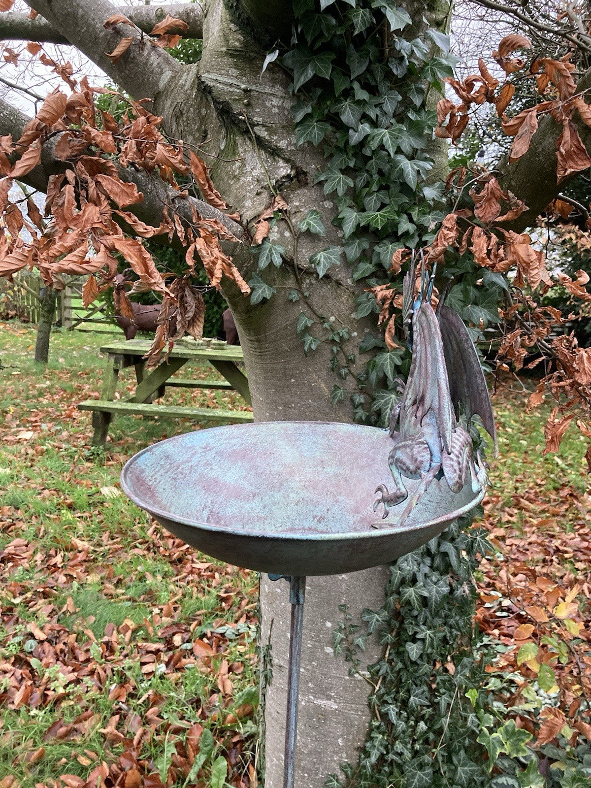 Metal Blue Dragon Bird bath / Feeder Garden Stake Ornament