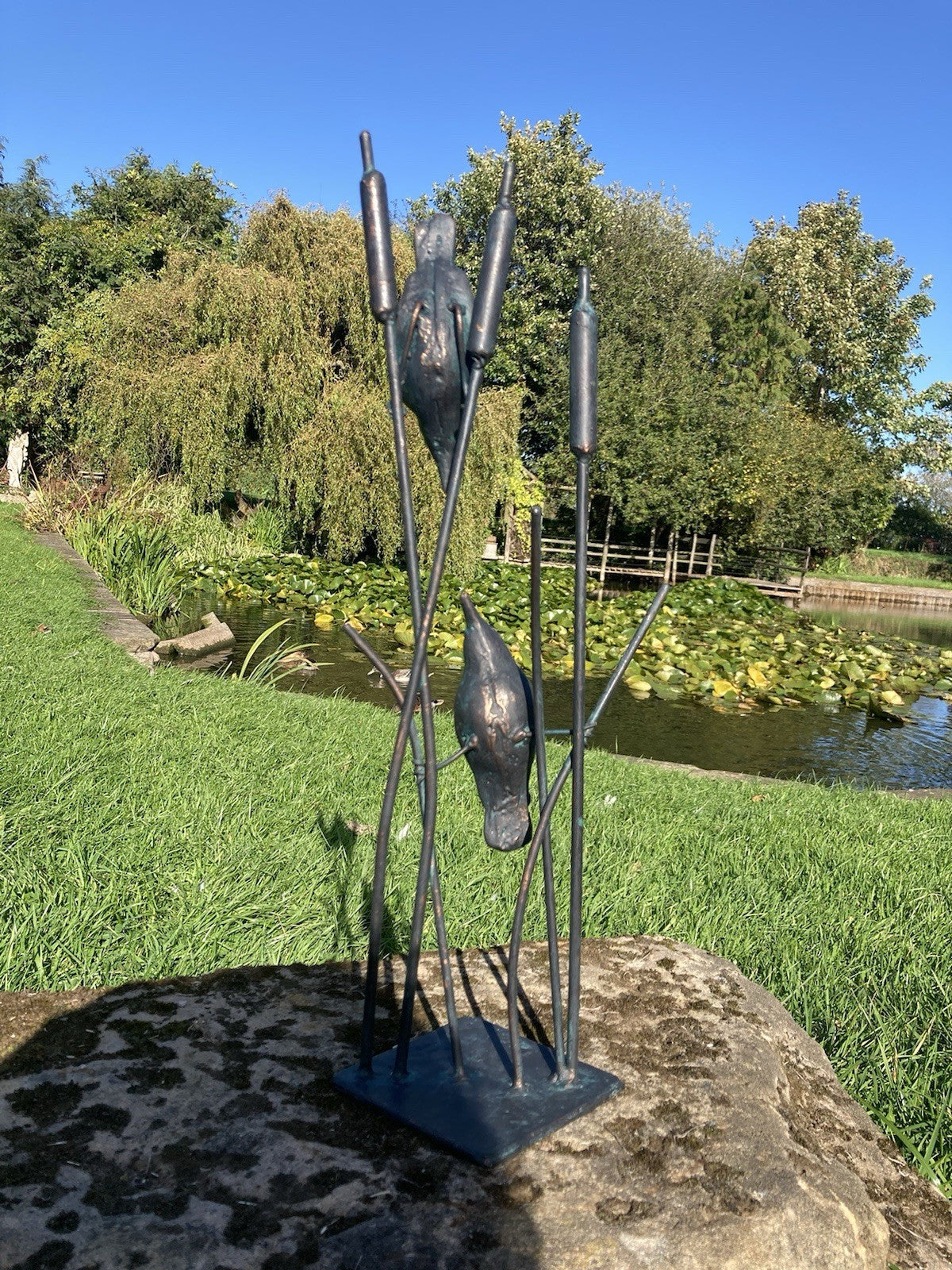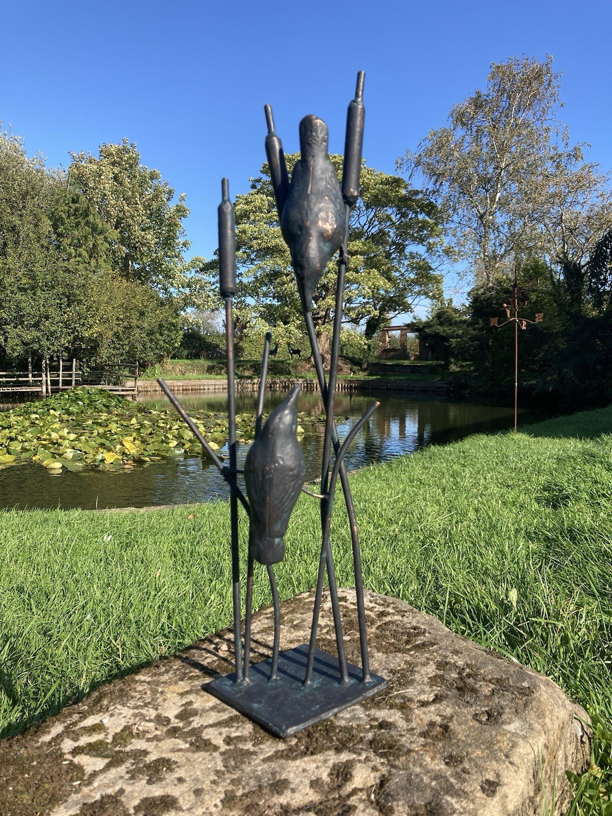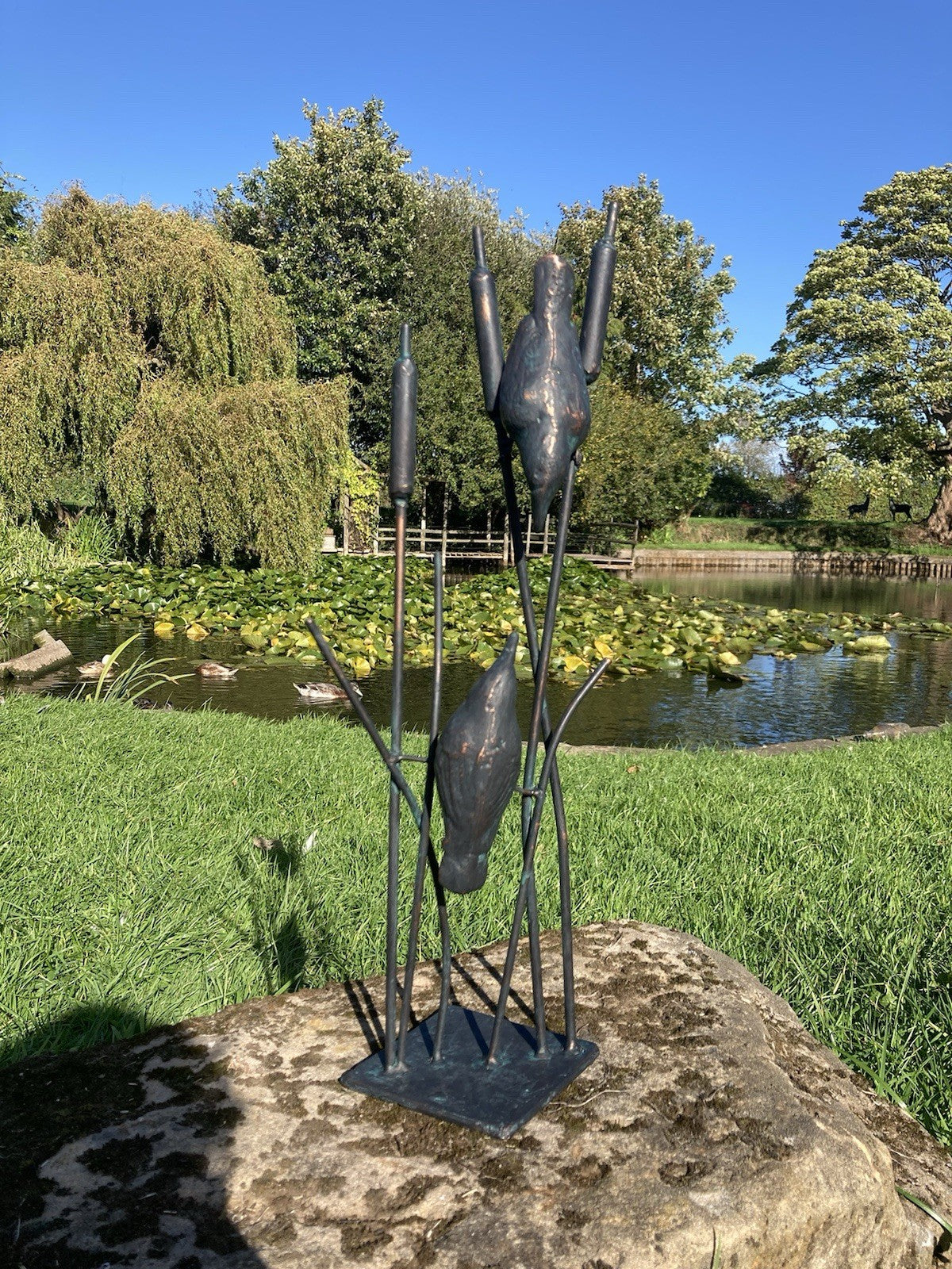 Metal Cast Aluminium Birds in Reeds Garden Ornament