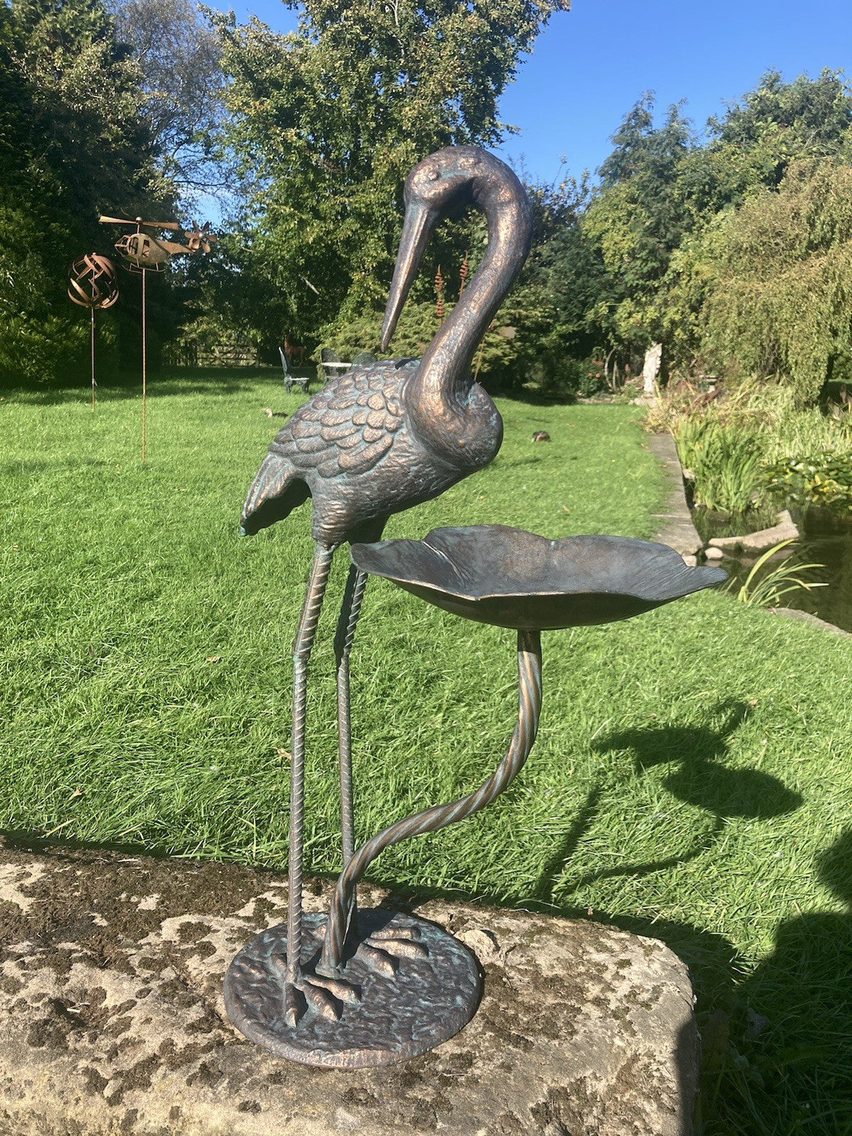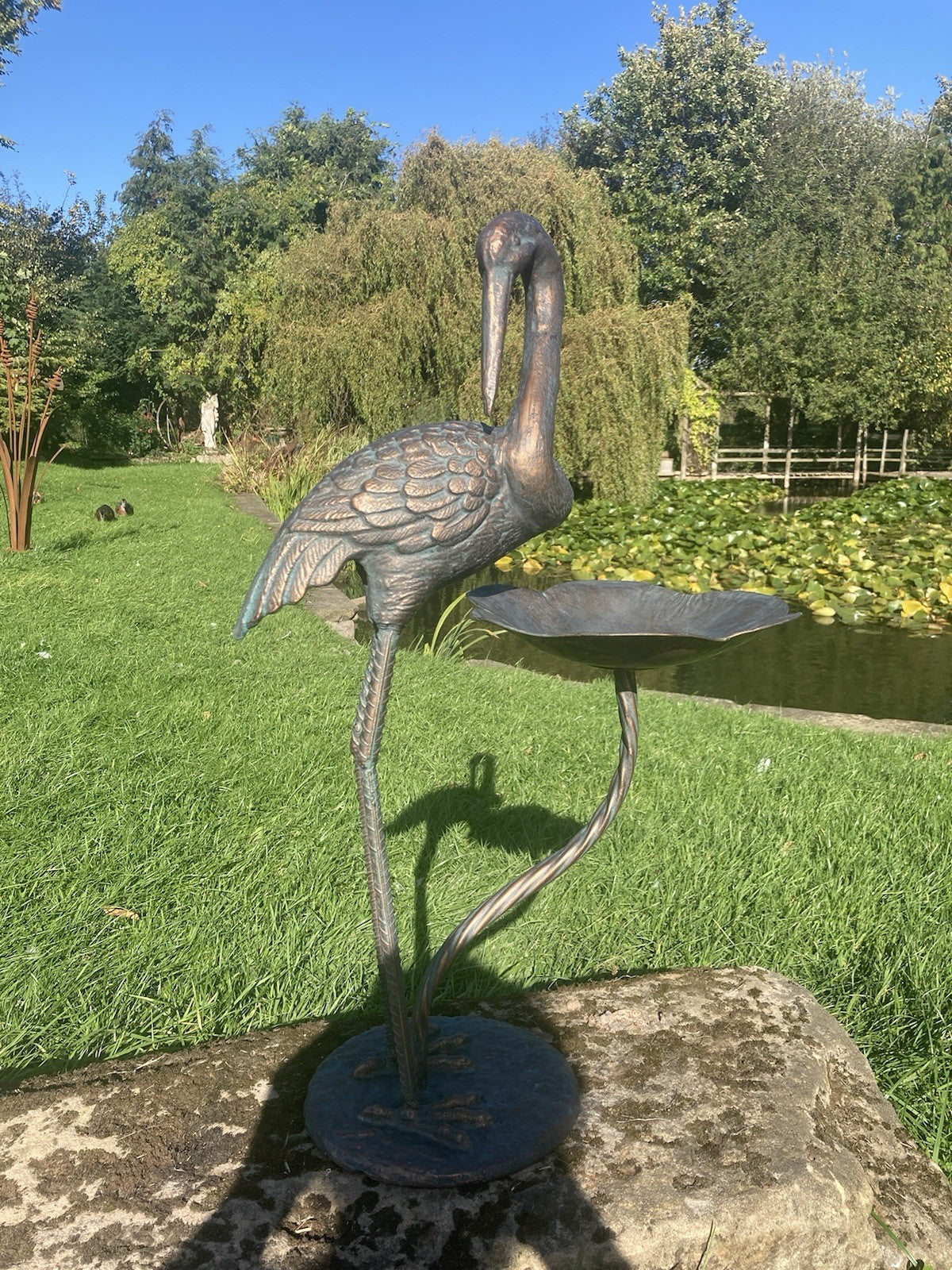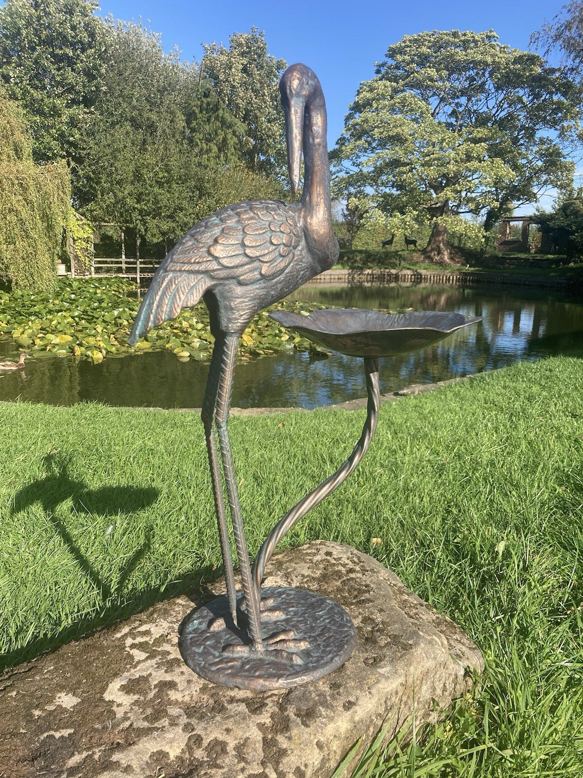Metal Cast Aluminium Crane bird bath / feeder Garden Ornament