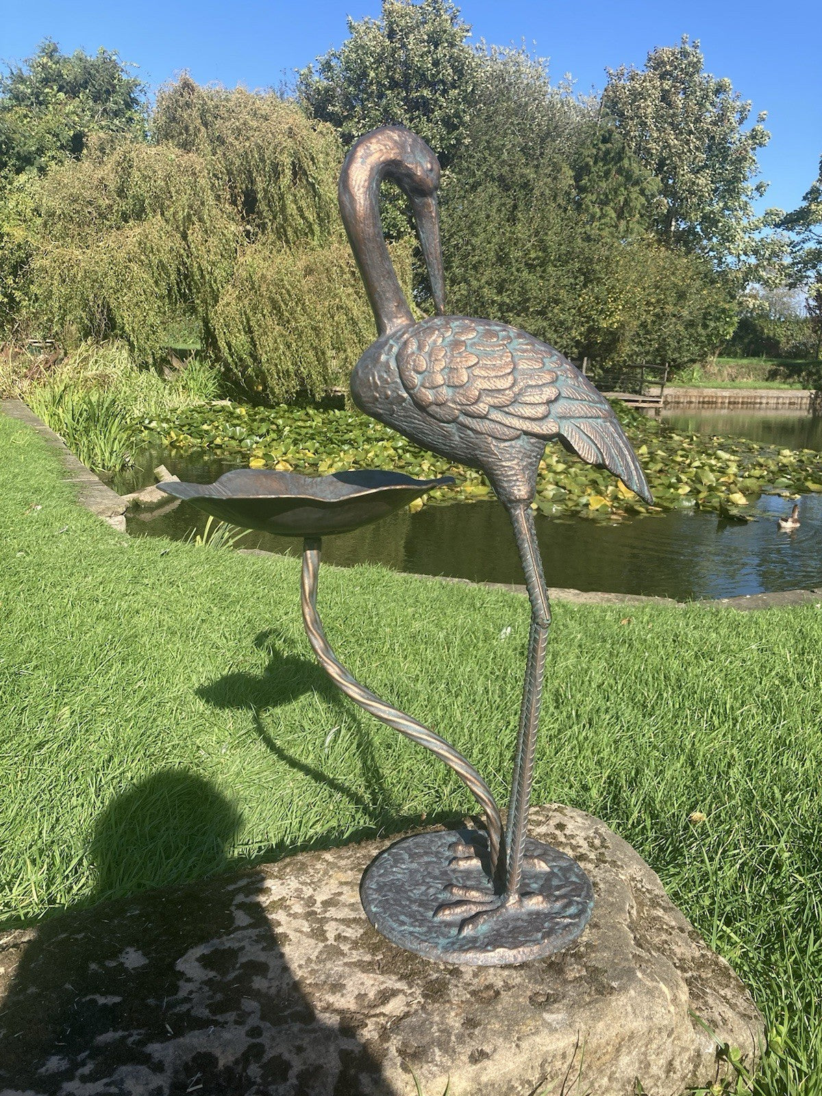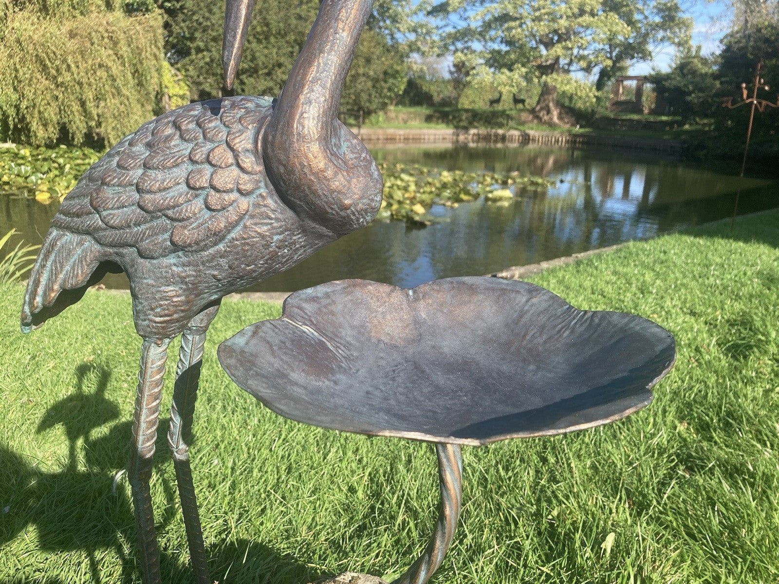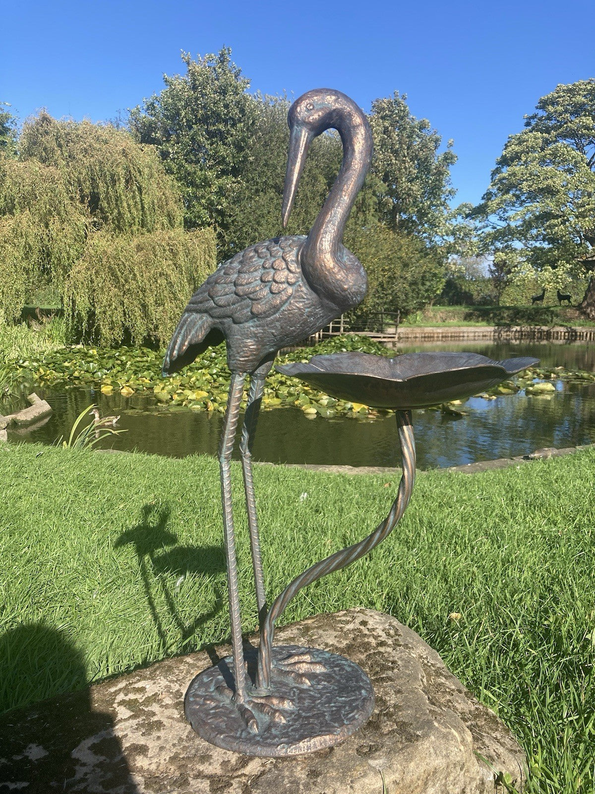 Metal Cast Aluminium Crane bird bath / feeder Garden Ornament