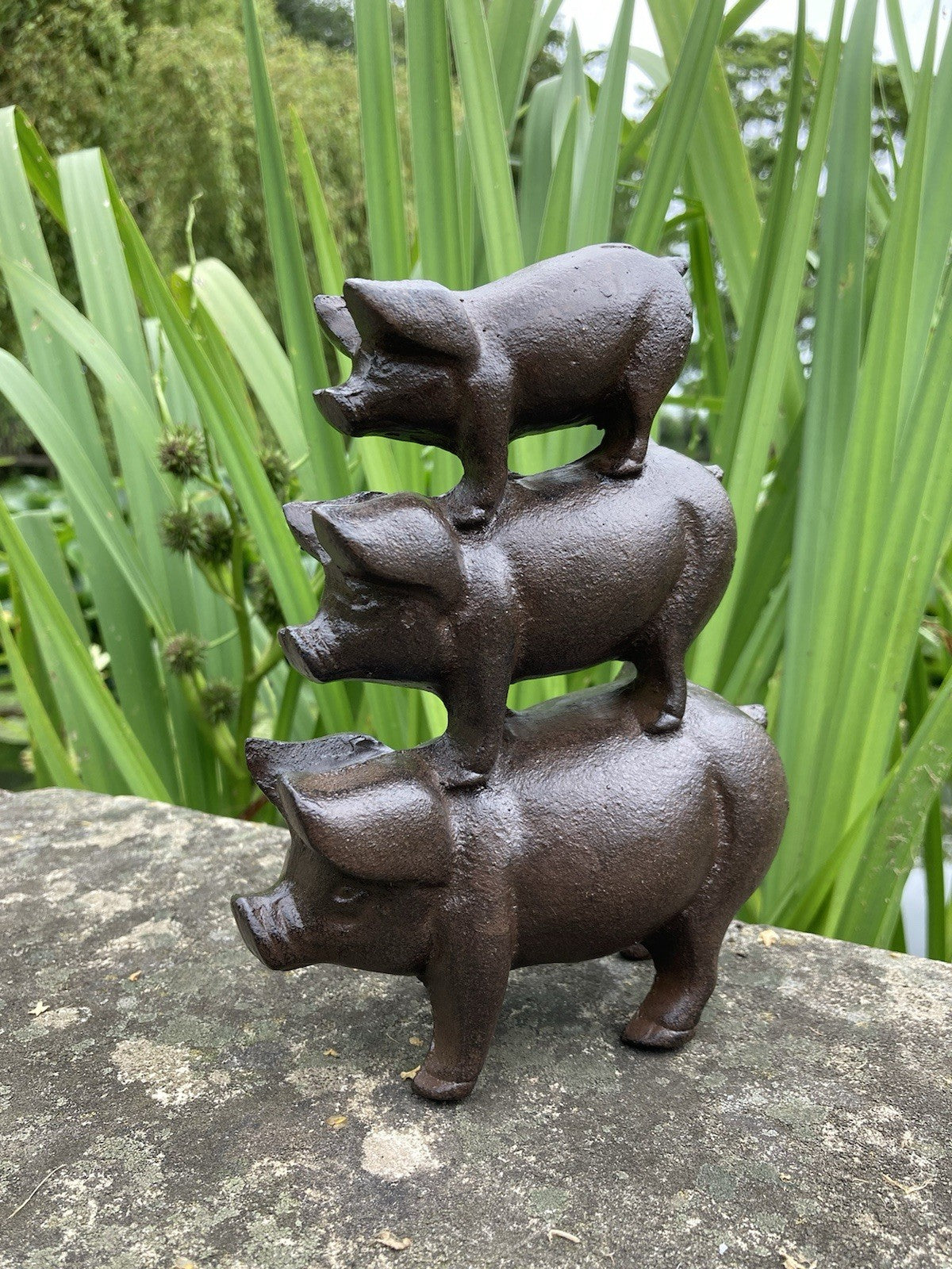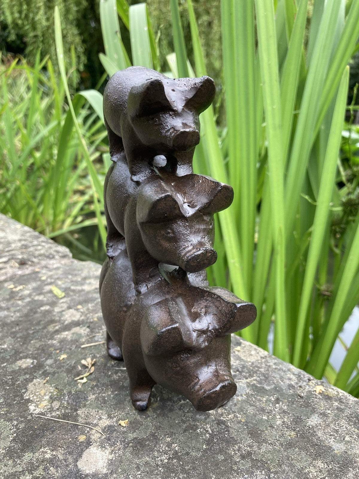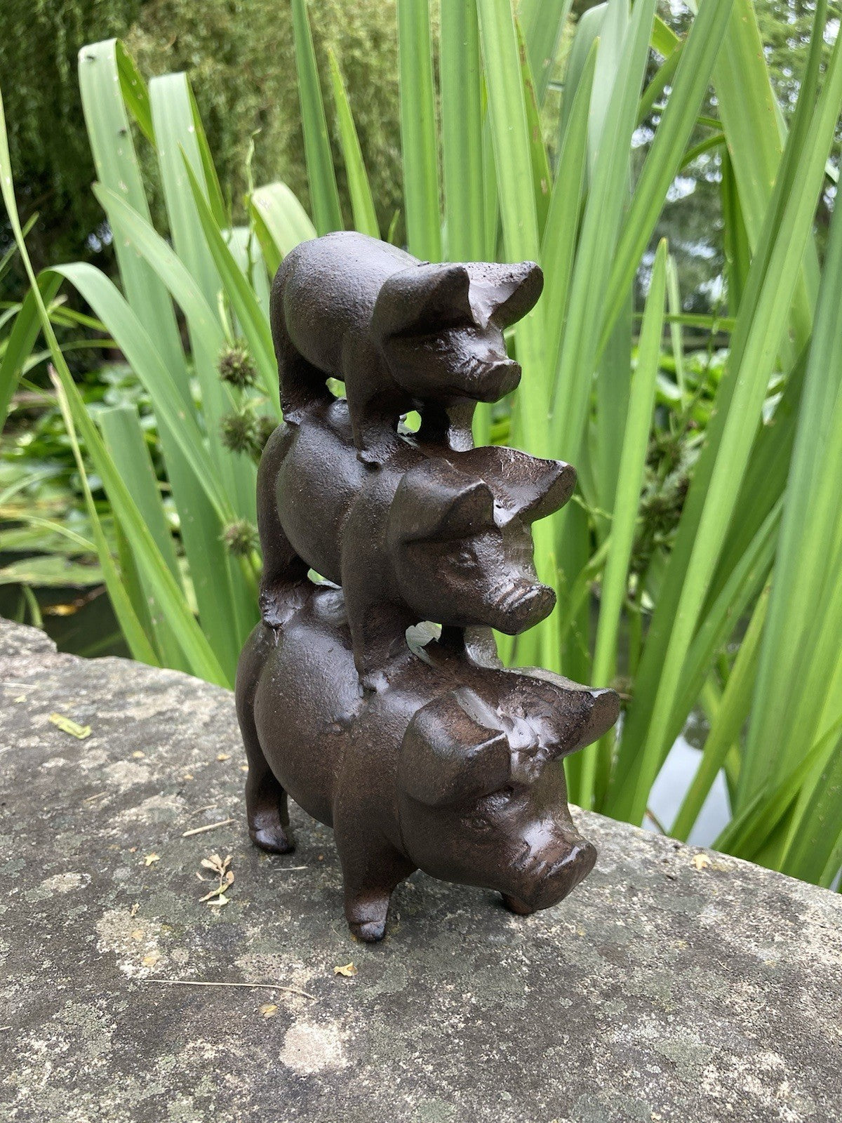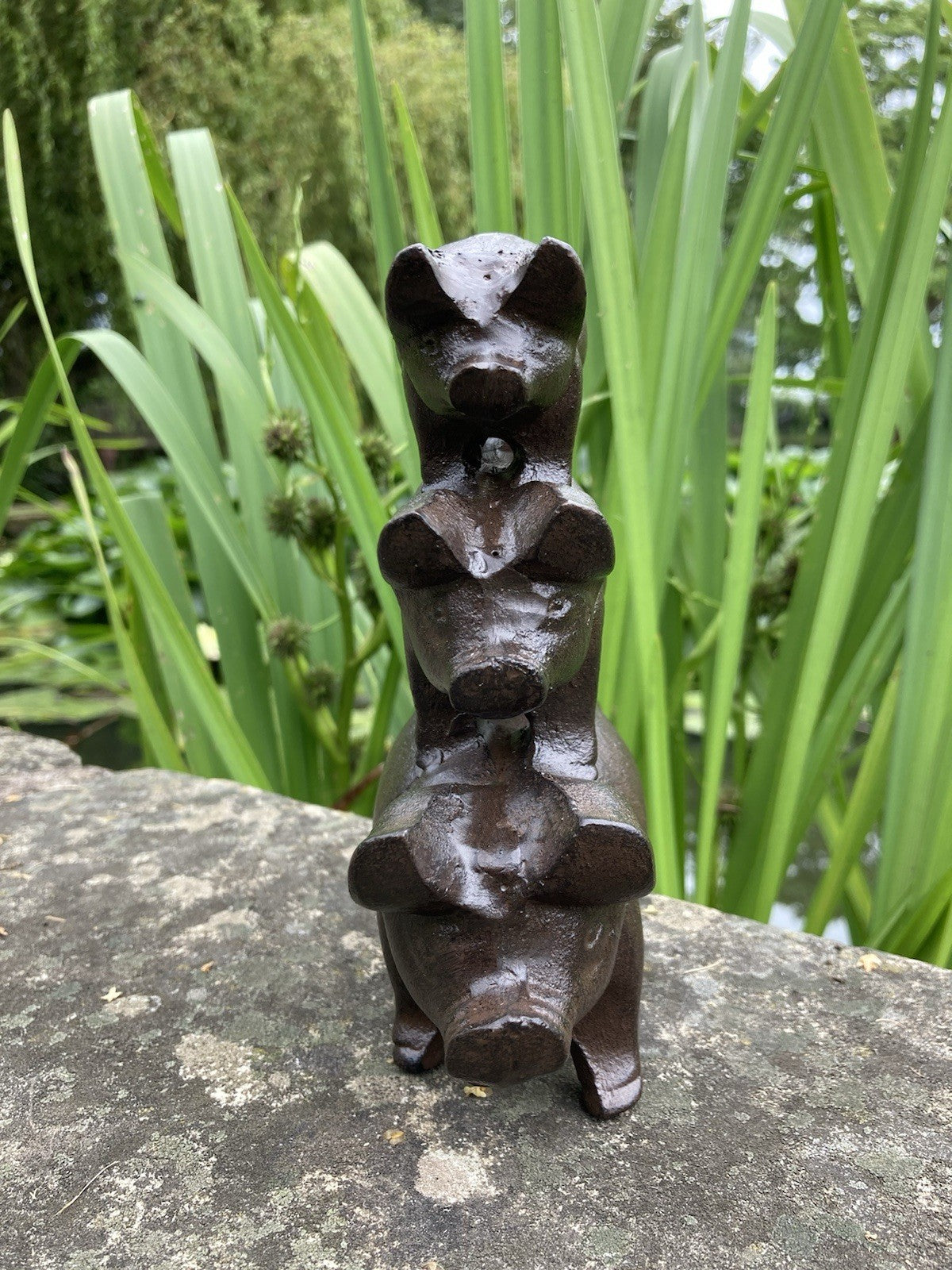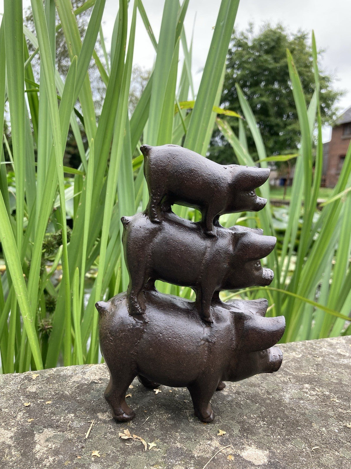 METAL CAST IRON TRIPLE PIG STACK GARDEN ORNAMENT