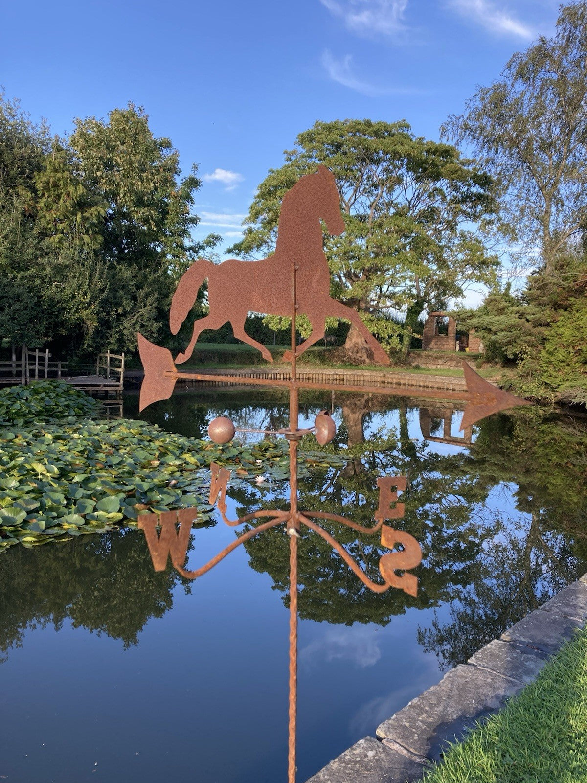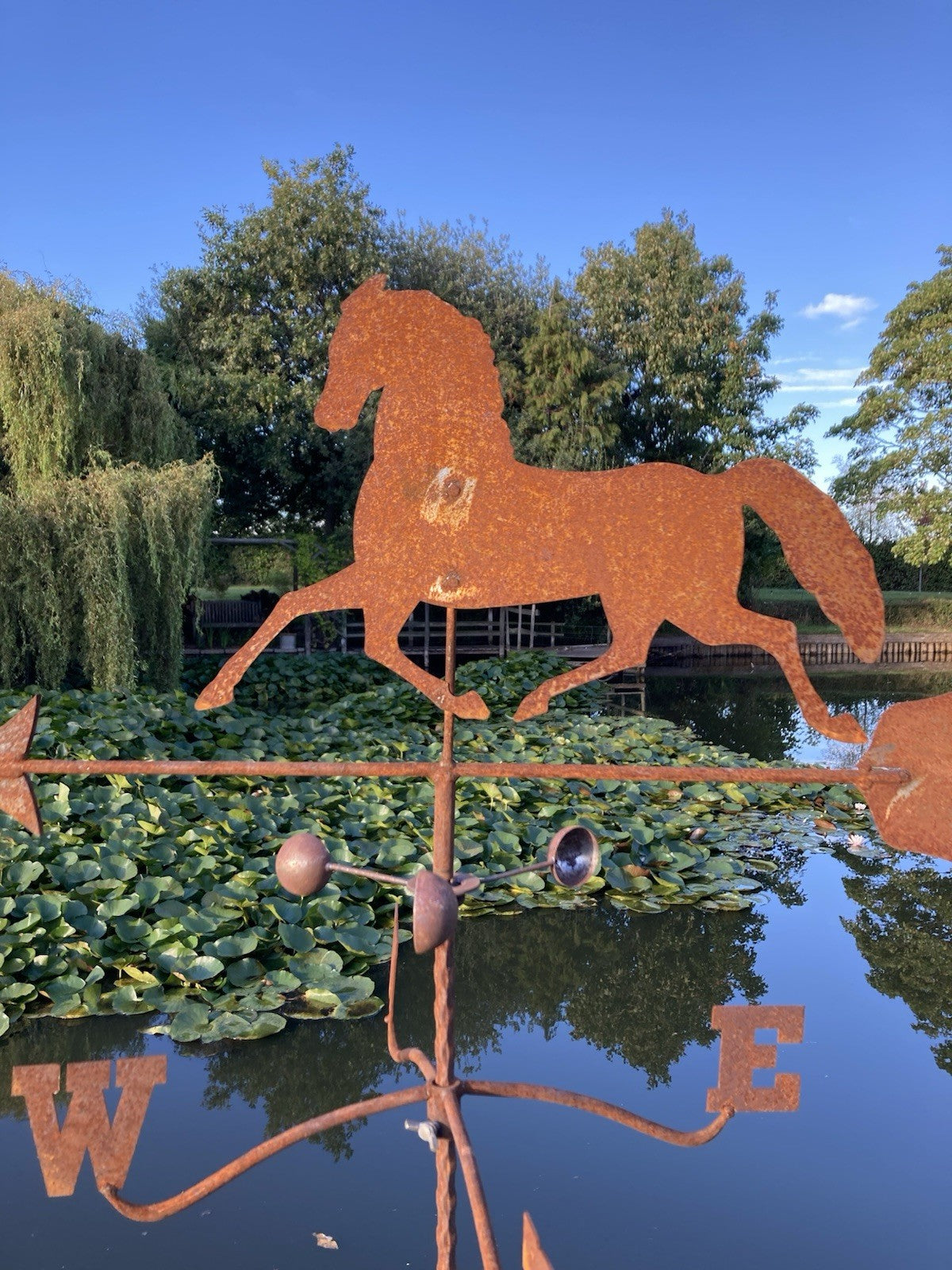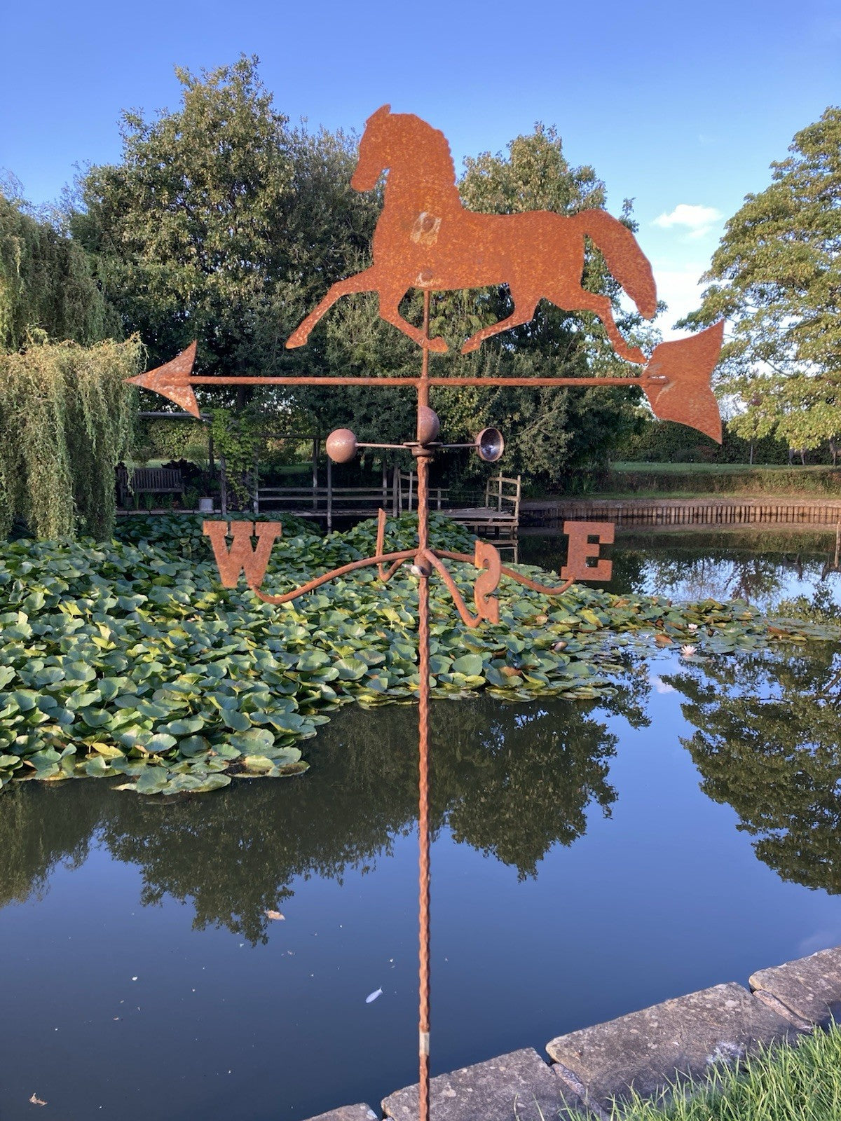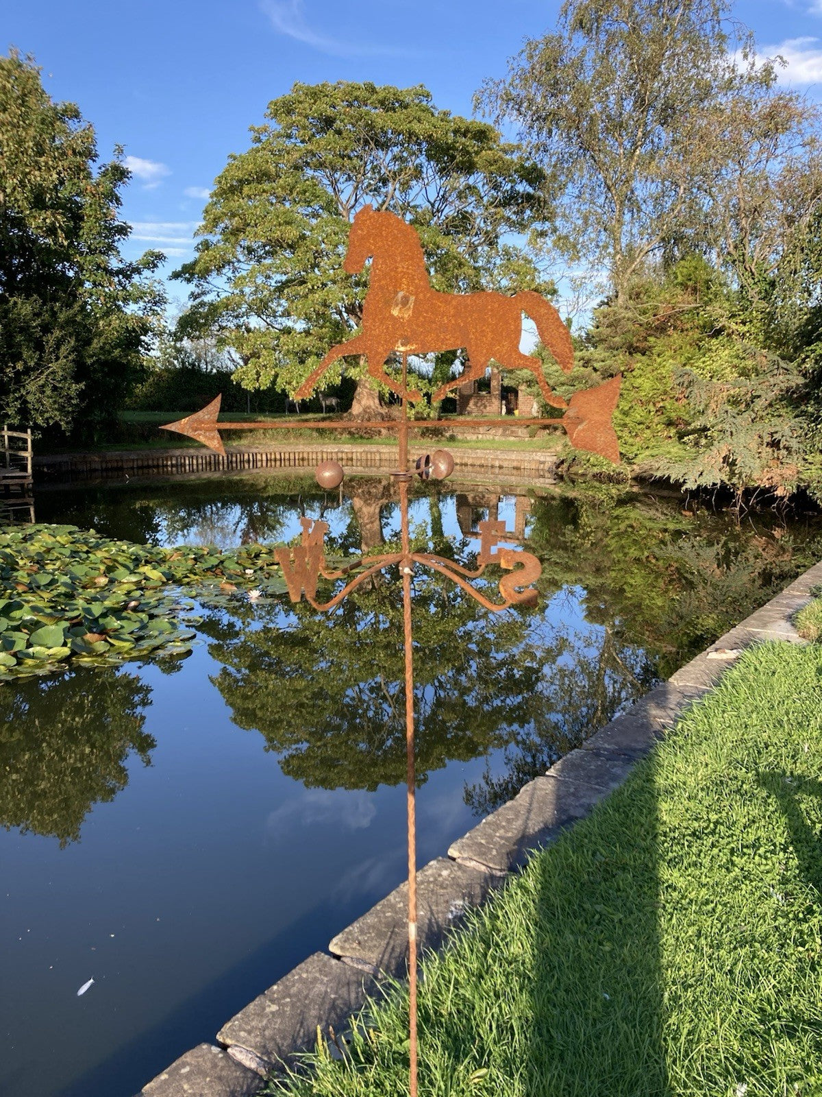 METAL GARDEN RUSTY HORSE WEATHERVANE WIND SPINNER STAKE ORNAMENT