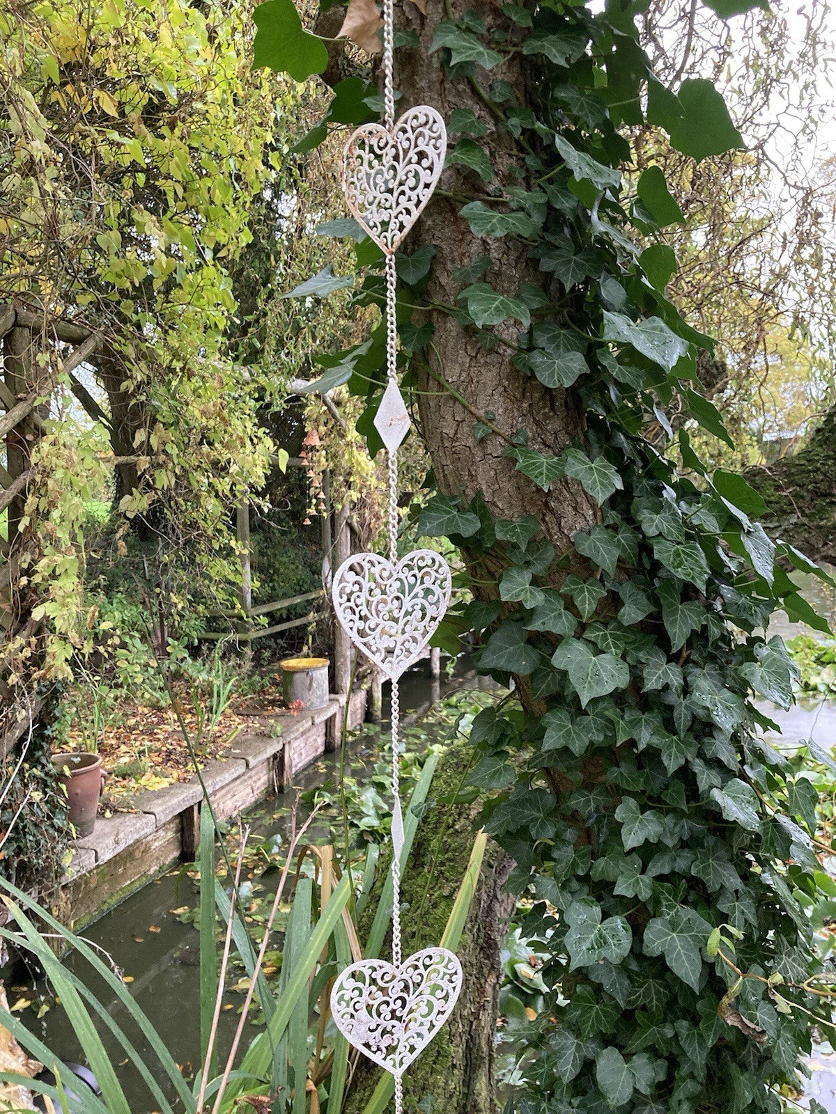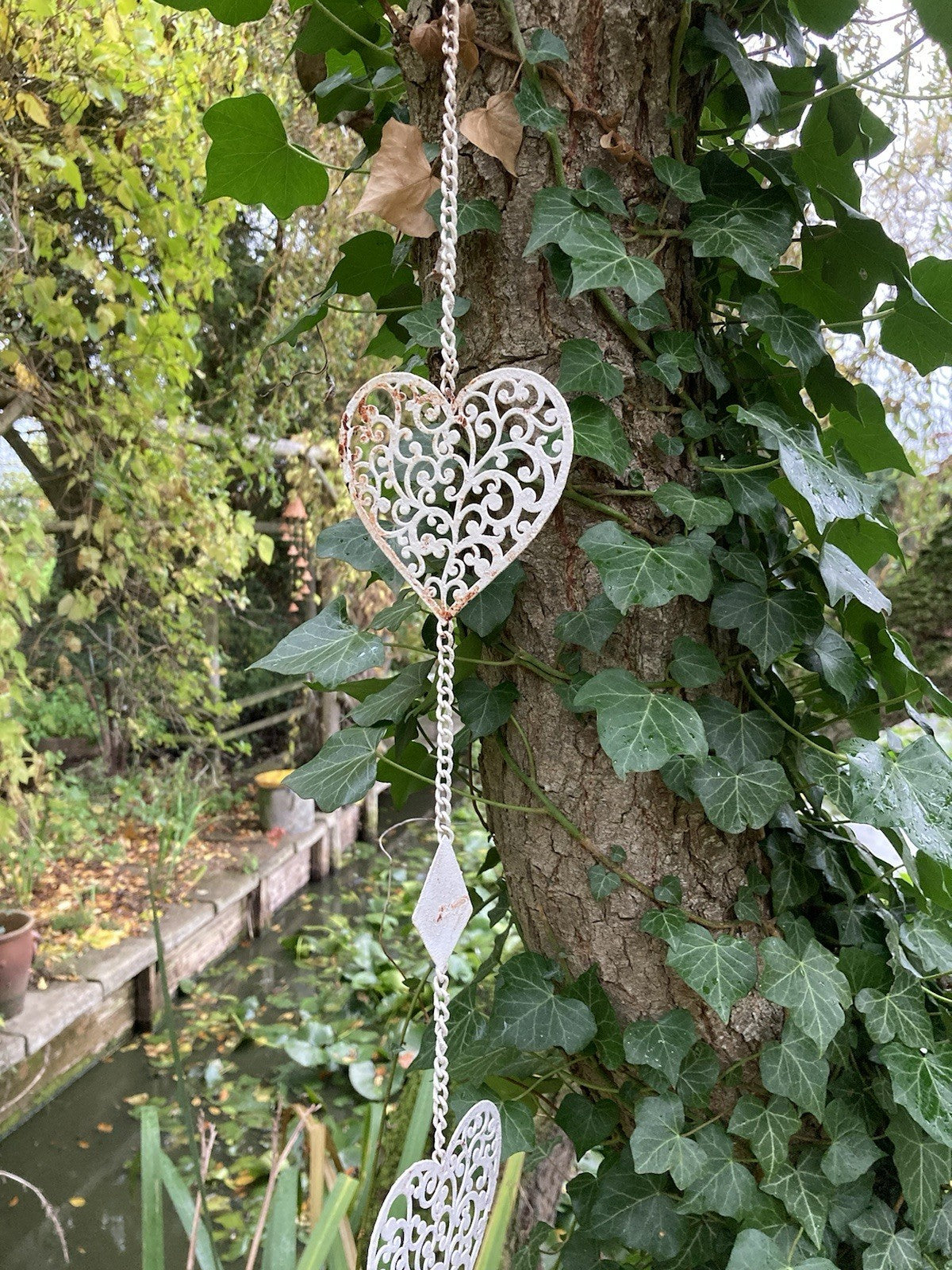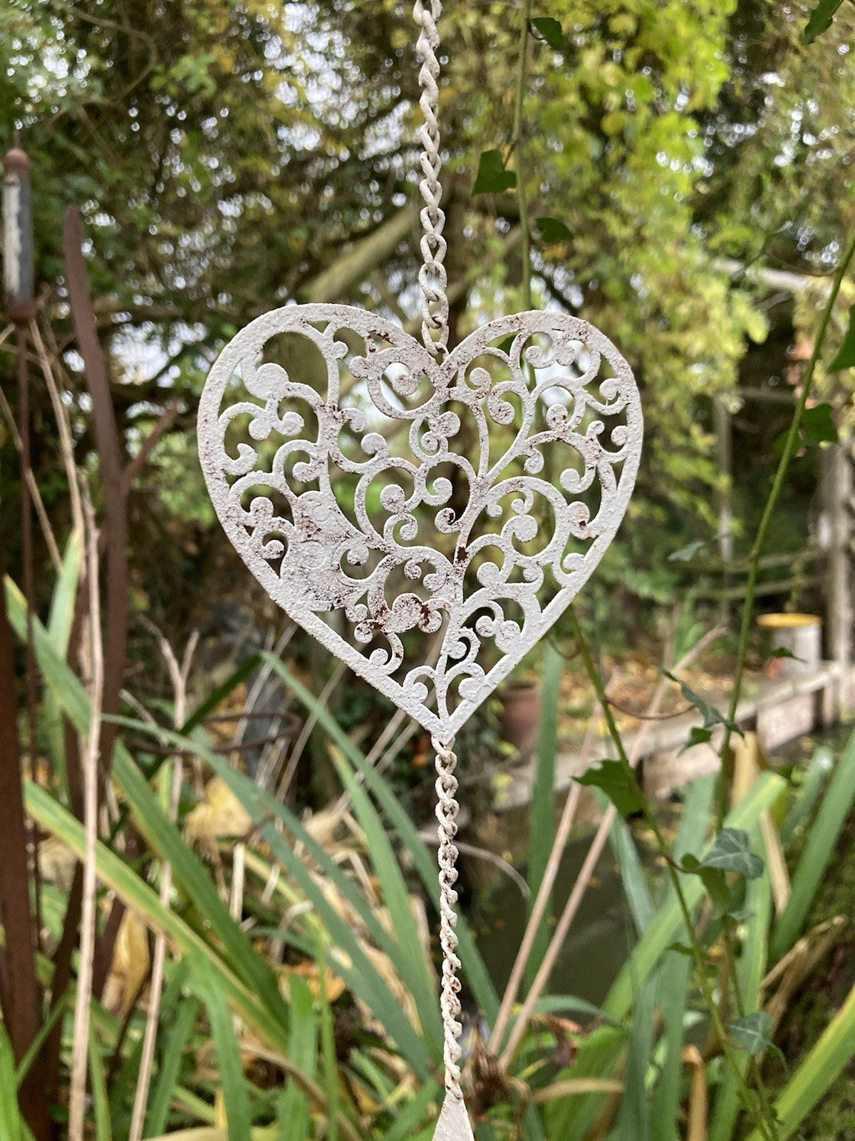 METAL HANGING HEART CHAIN GARDEN ORNAMENT DECOR