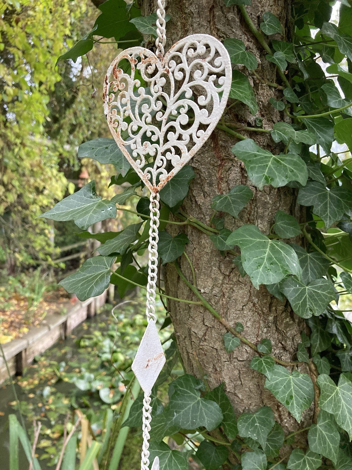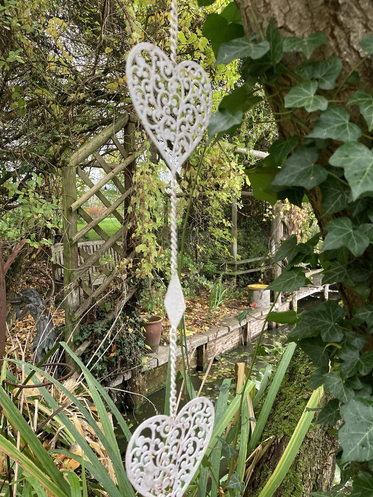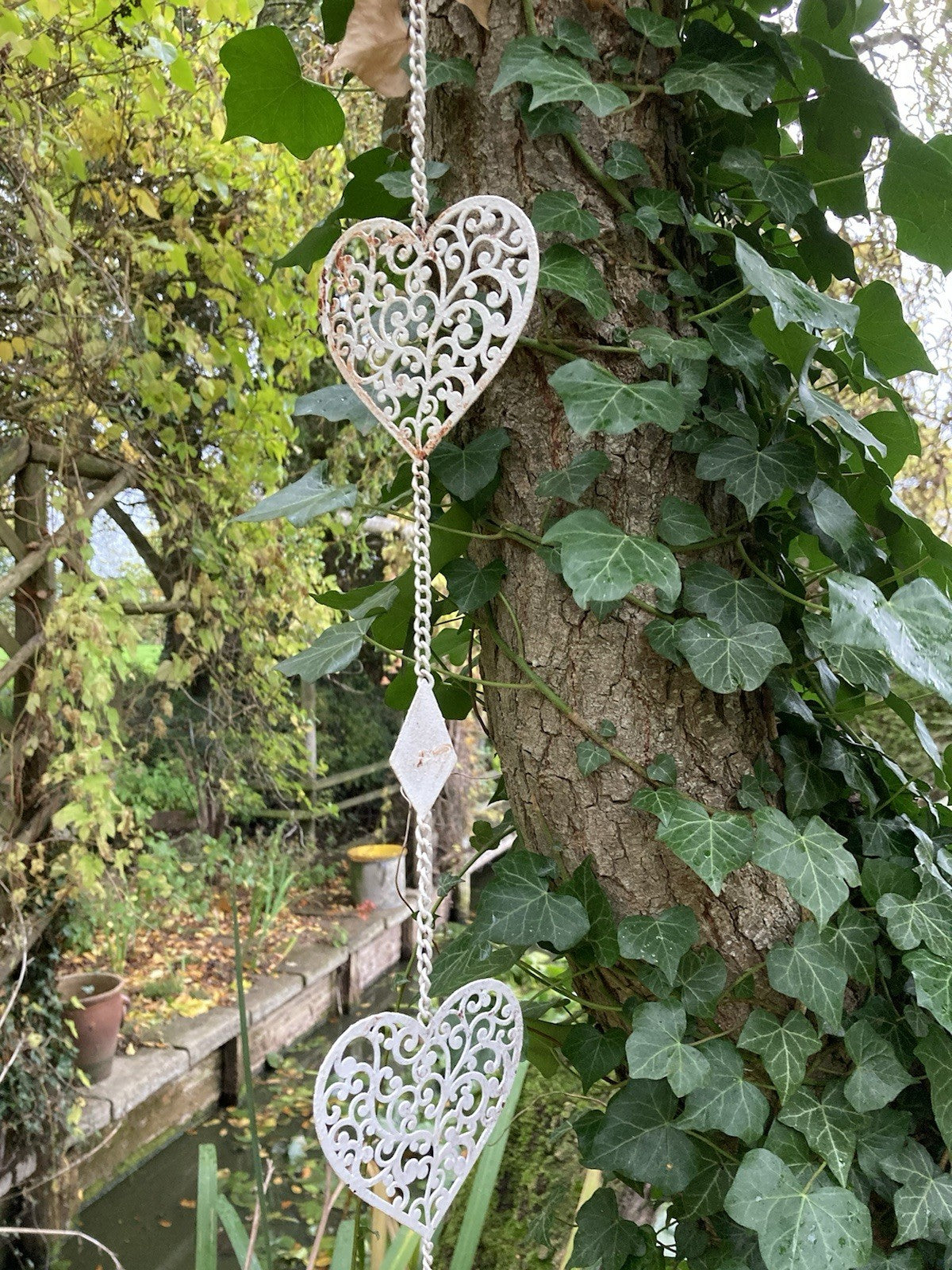METAL HANGING HEART CHAIN GARDEN ORNAMENT DECOR