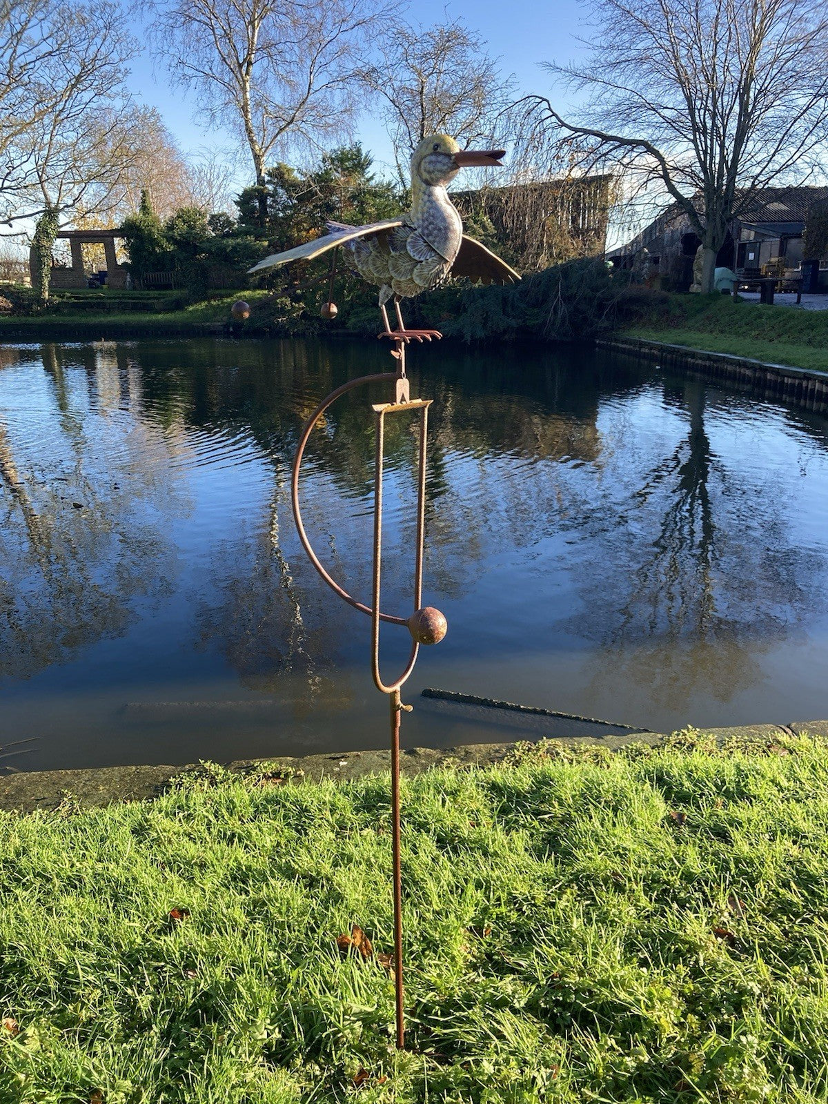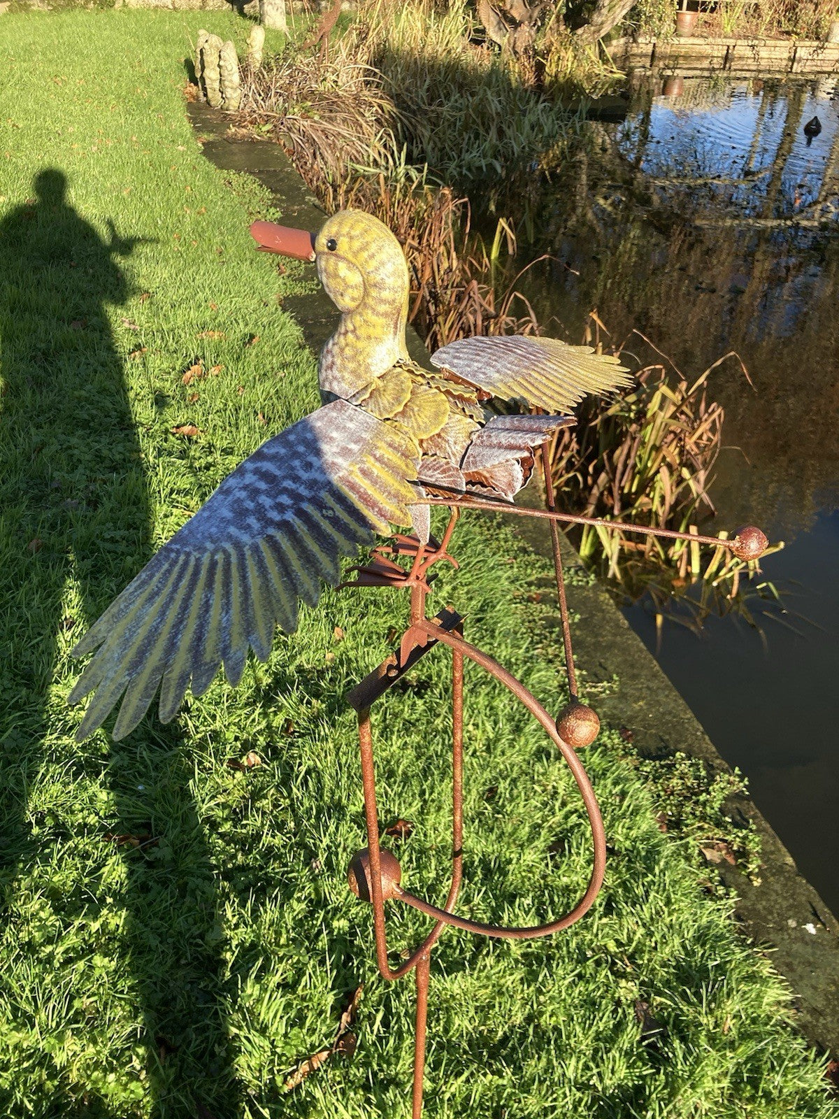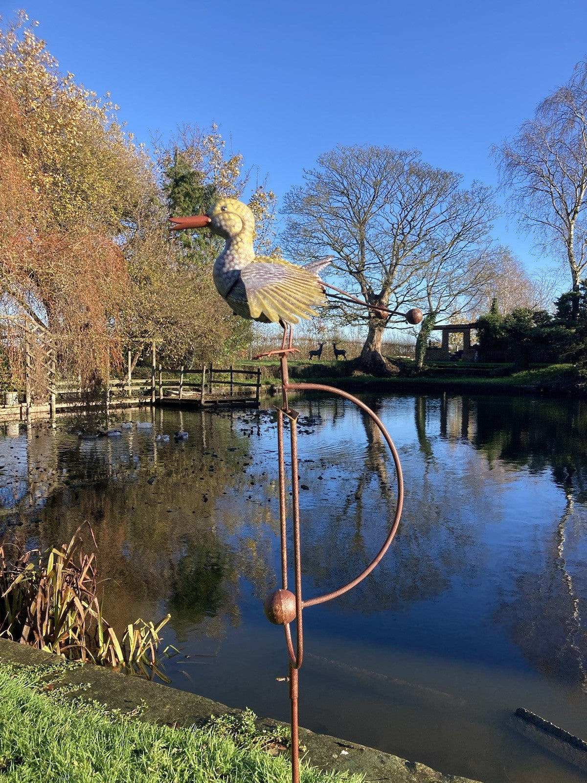 METAL ROCKING DUCK STAKE GARDEN DECORATION