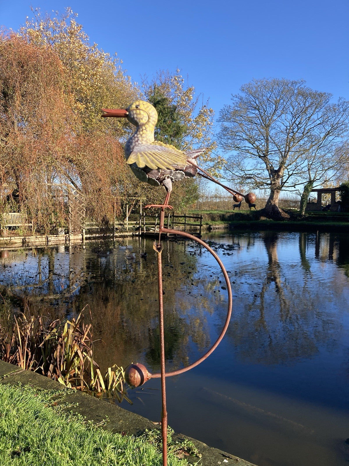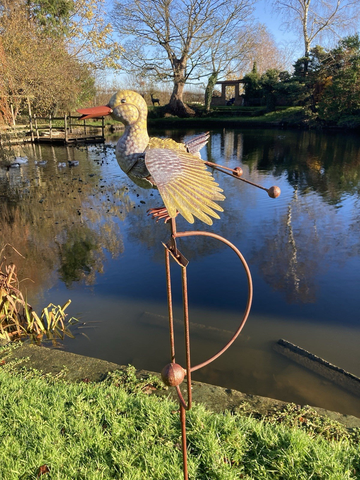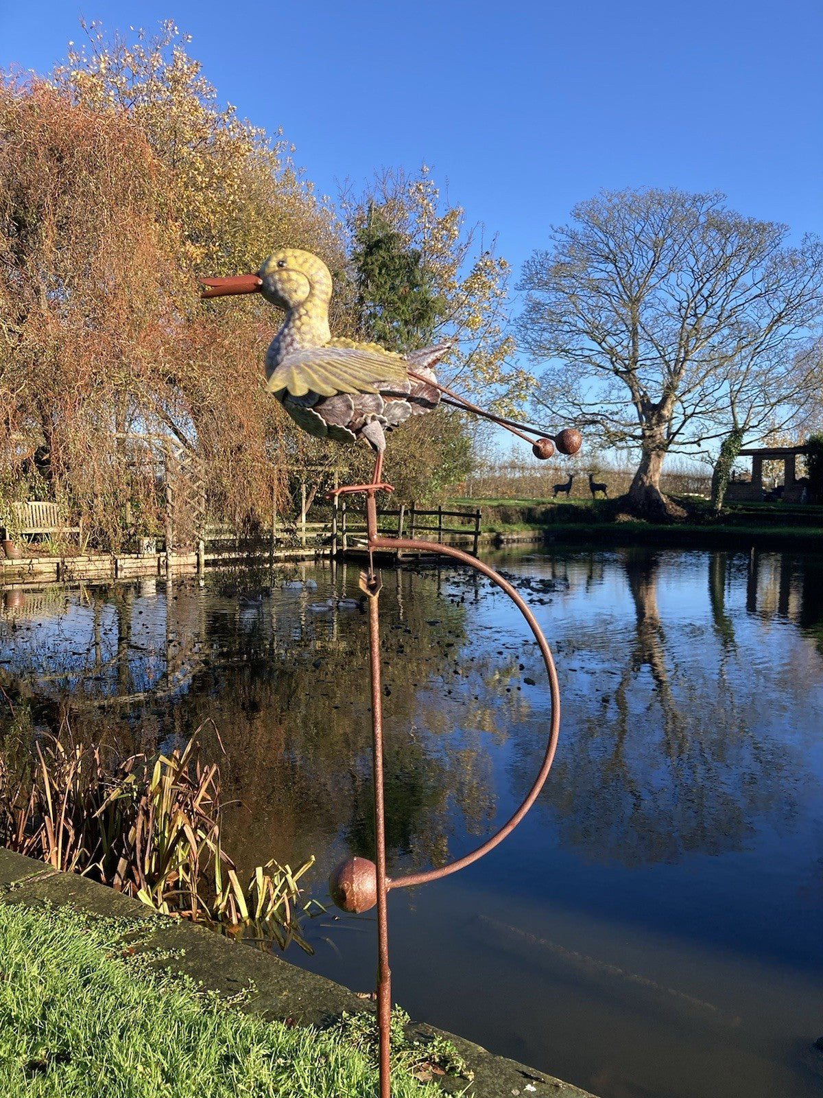 METAL ROCKING DUCK STAKE GARDEN DECORATION