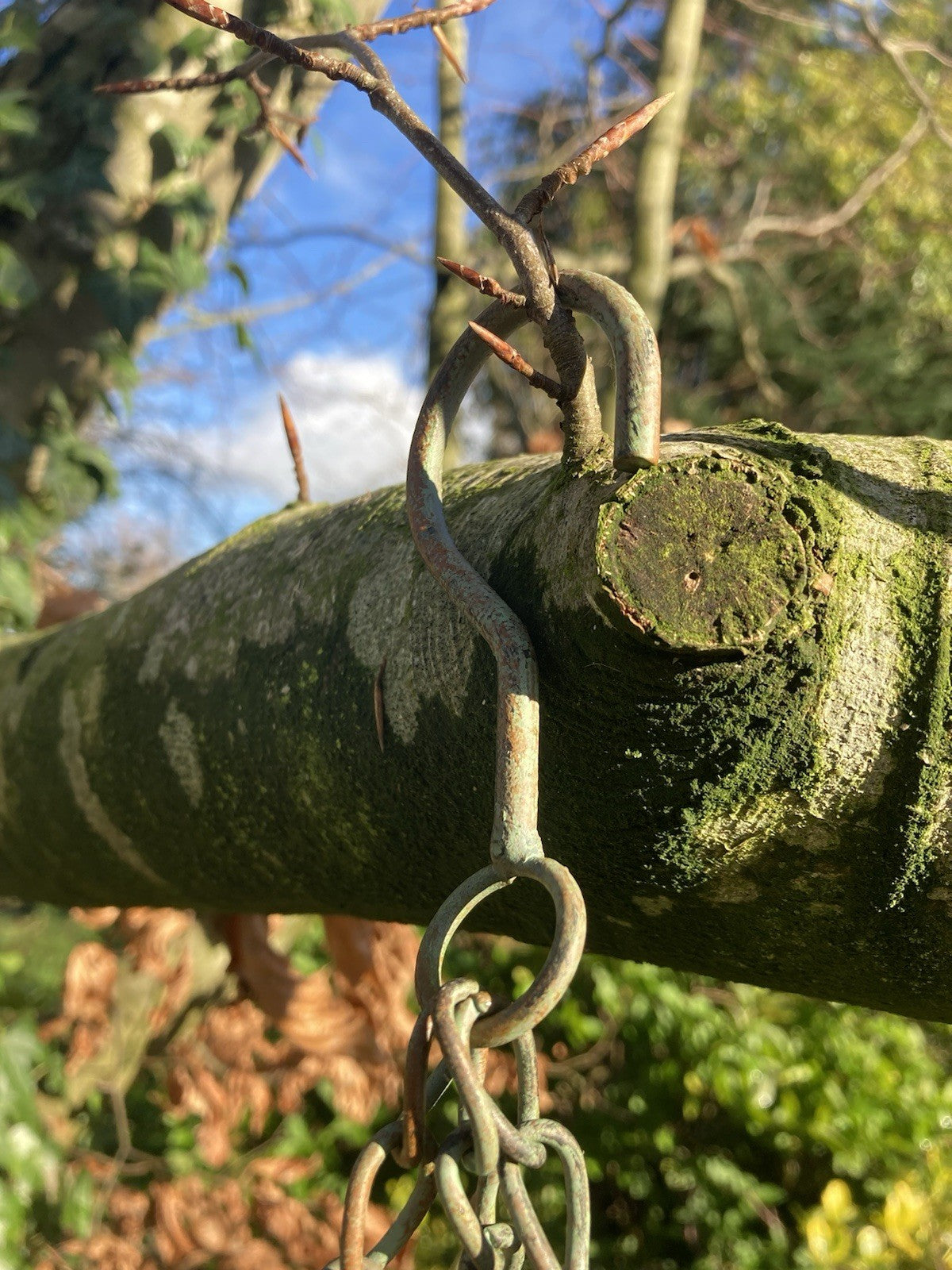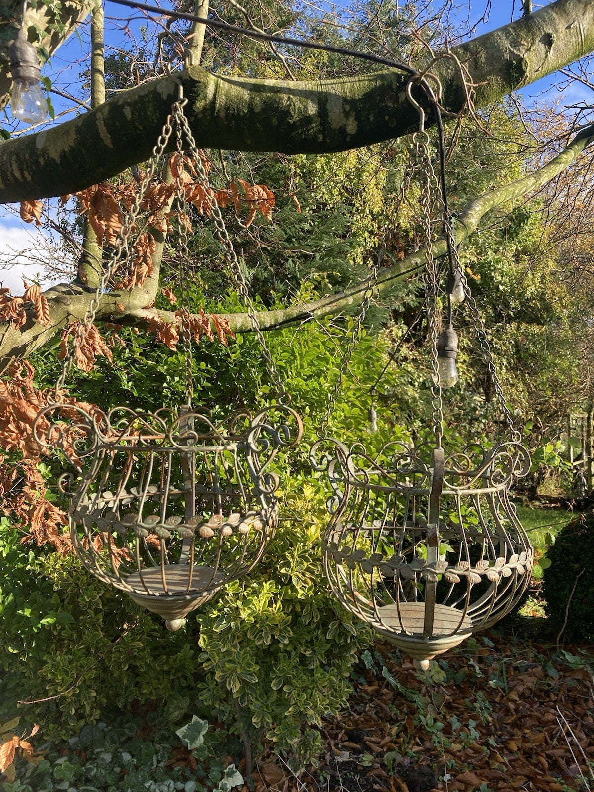 Measure 70 cm high including the chain and 30 cm at the widest point.