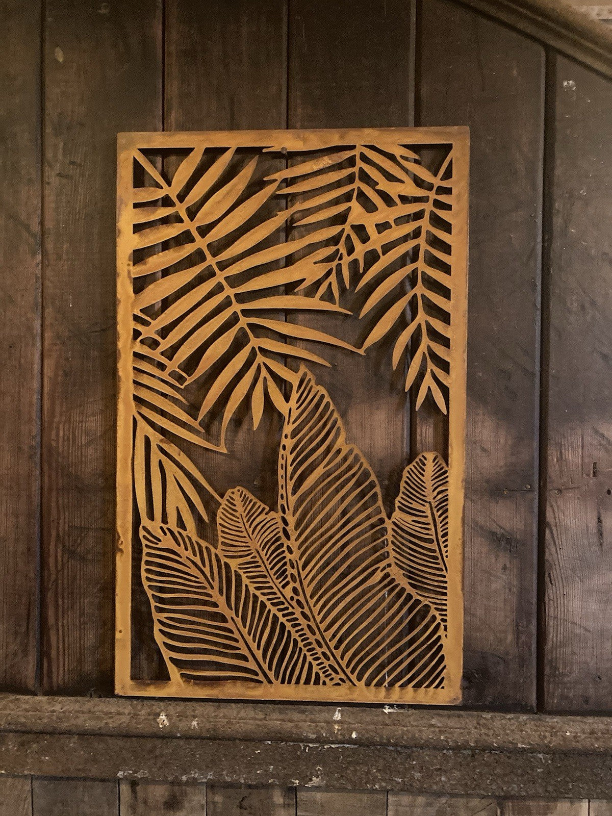 RUSTY METAL FERN LEAF WALL PLAQUE HANGING GARDEN ORNAMENT