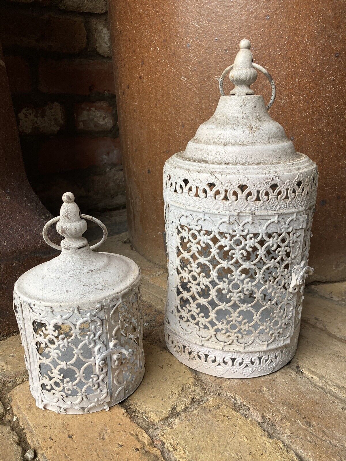 Set of 2 Metal Hanging Lantern garden / indoor ornaments