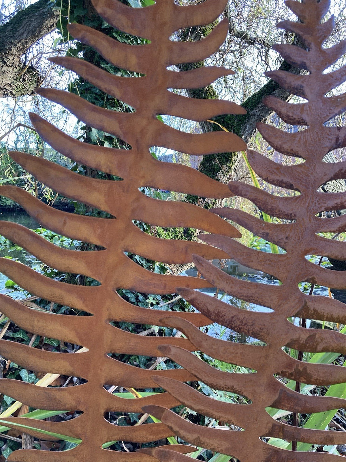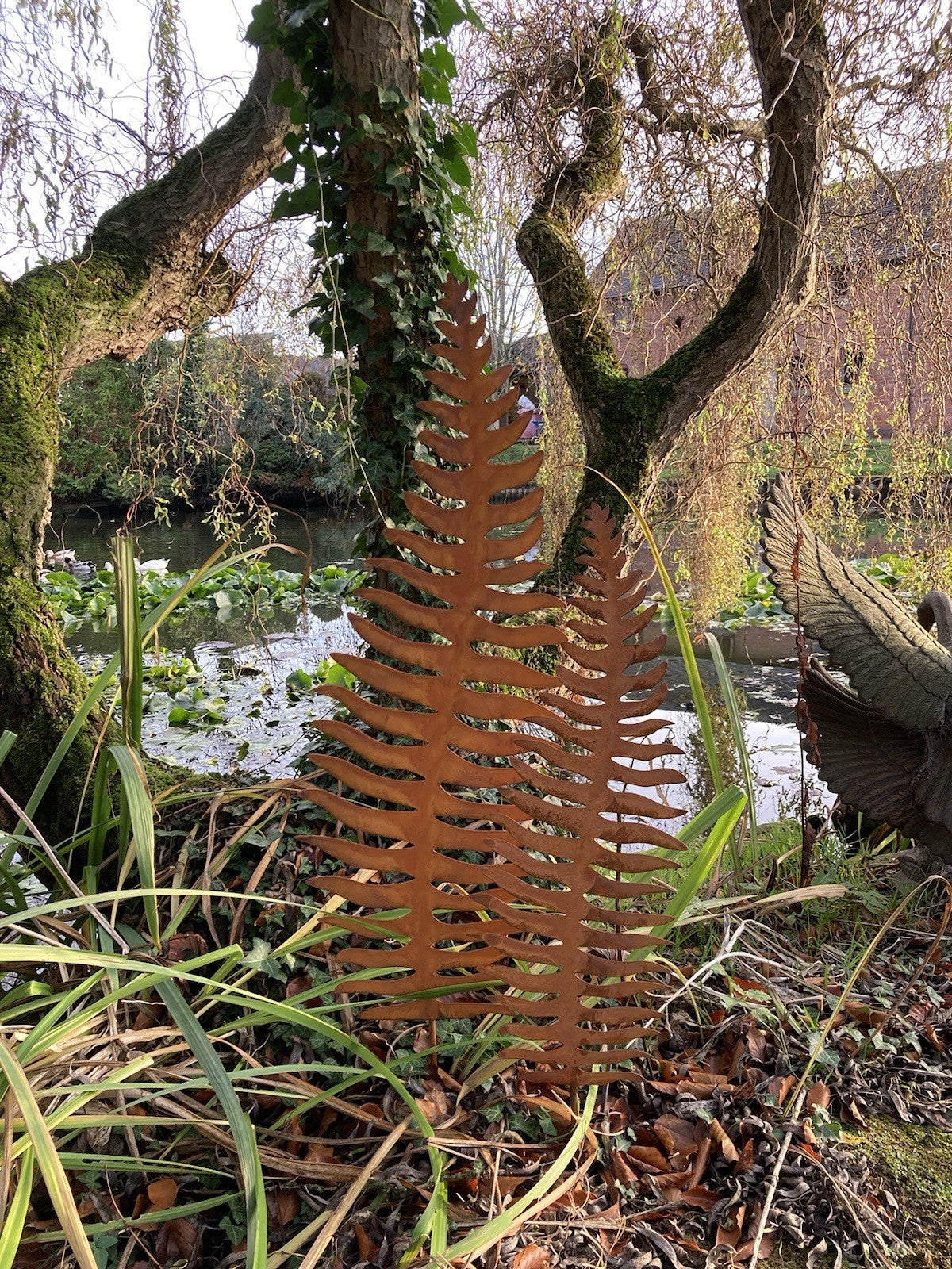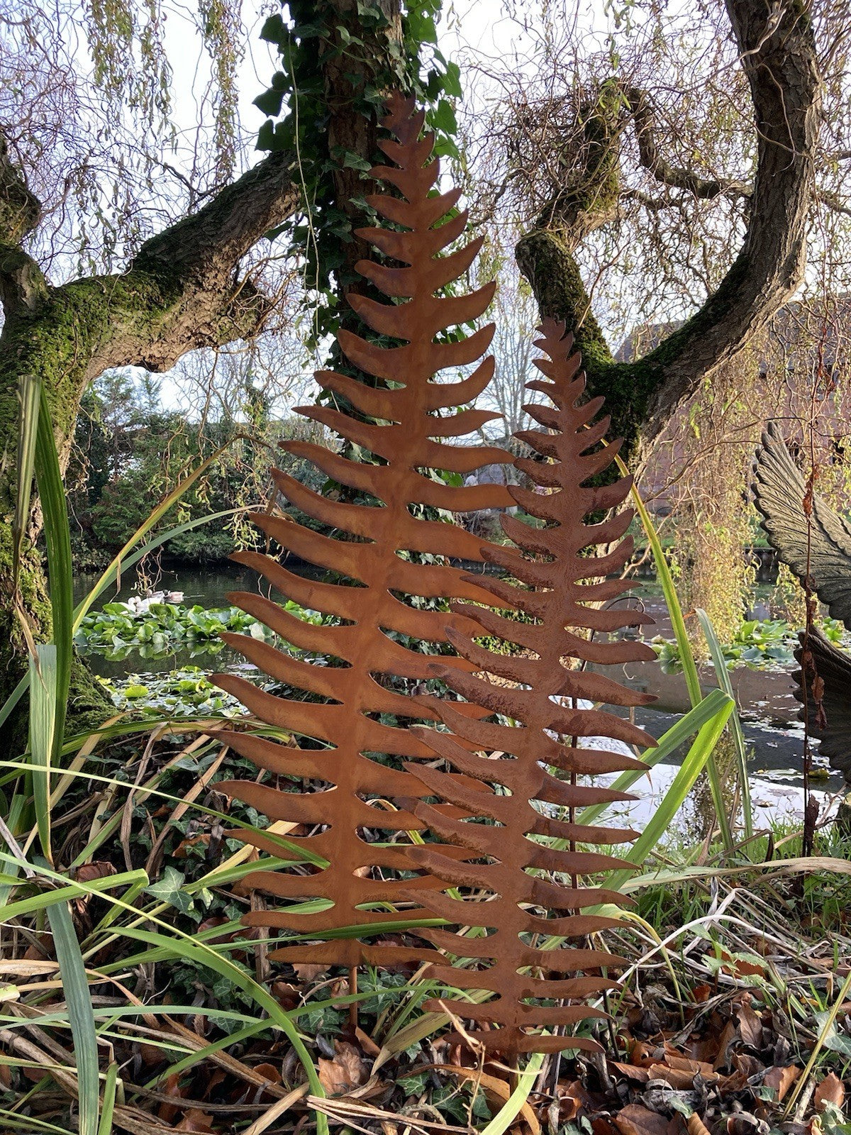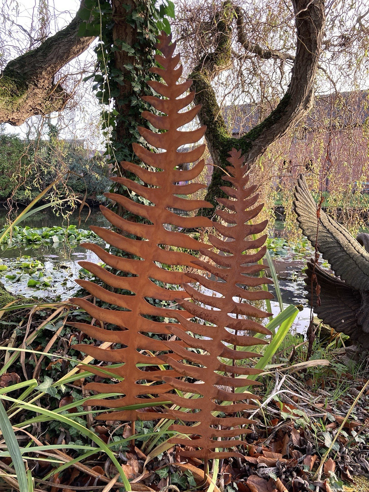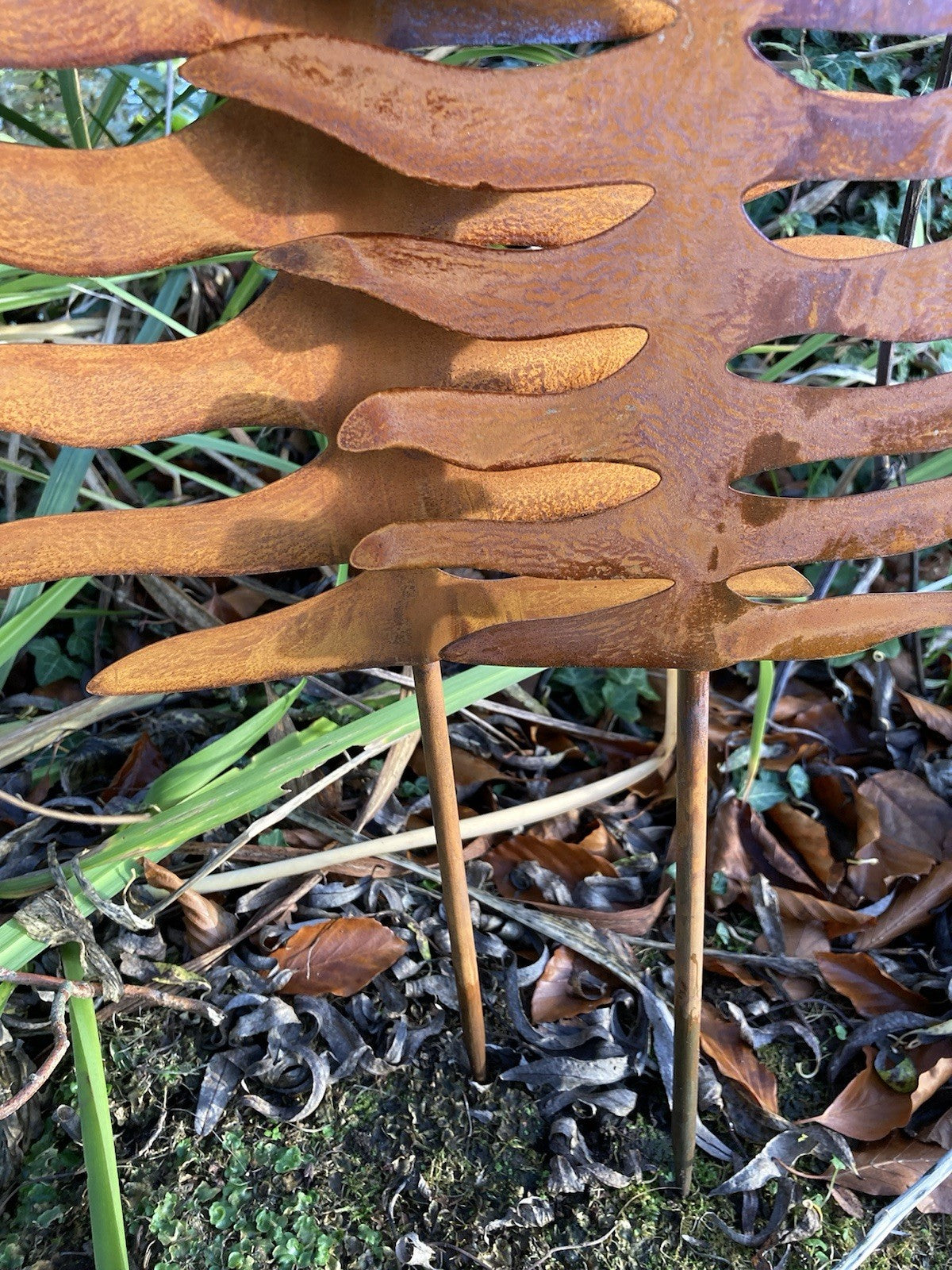 Set of 2 Rusty Metal Fern Leaf Plant Supports Stakes