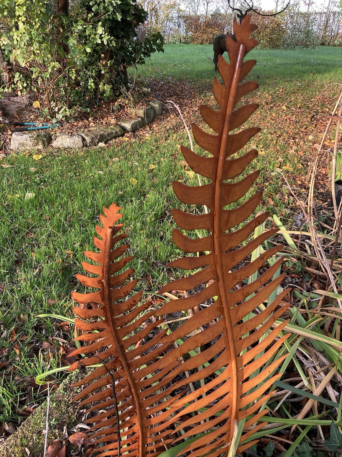 SET OF 2 RUSTY METAL FERN LEAF PLANT STAKES GARDEN DECORATIONS