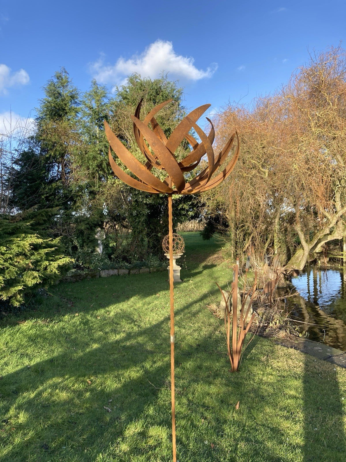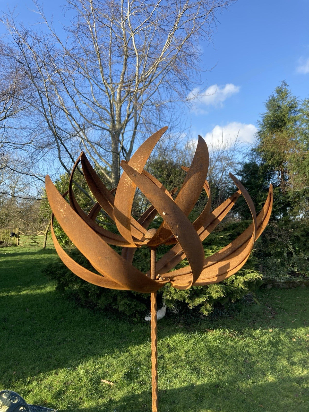 Tall Metal Garden Rusty Kinetic Wind Sculpture Spinner Stake