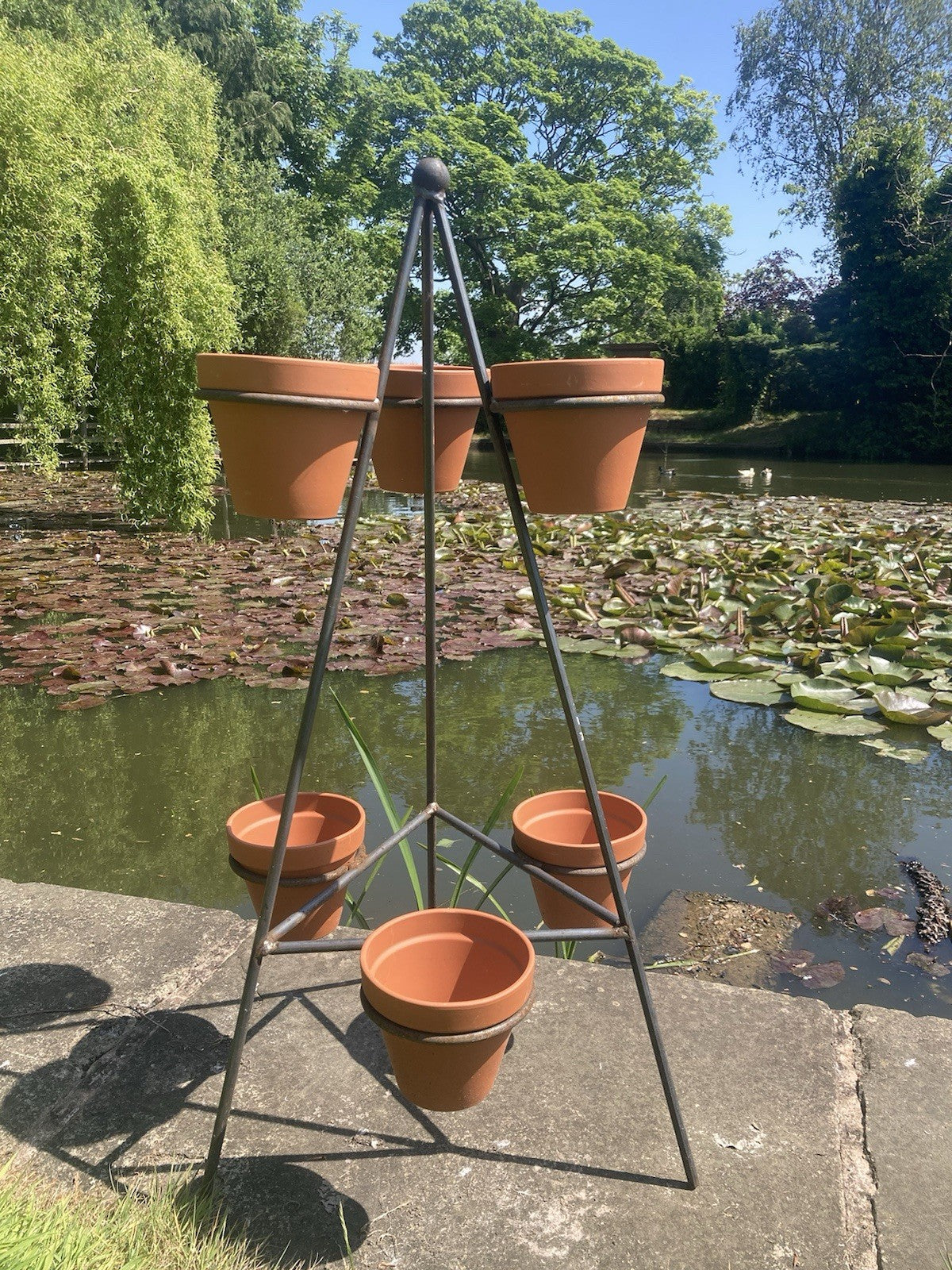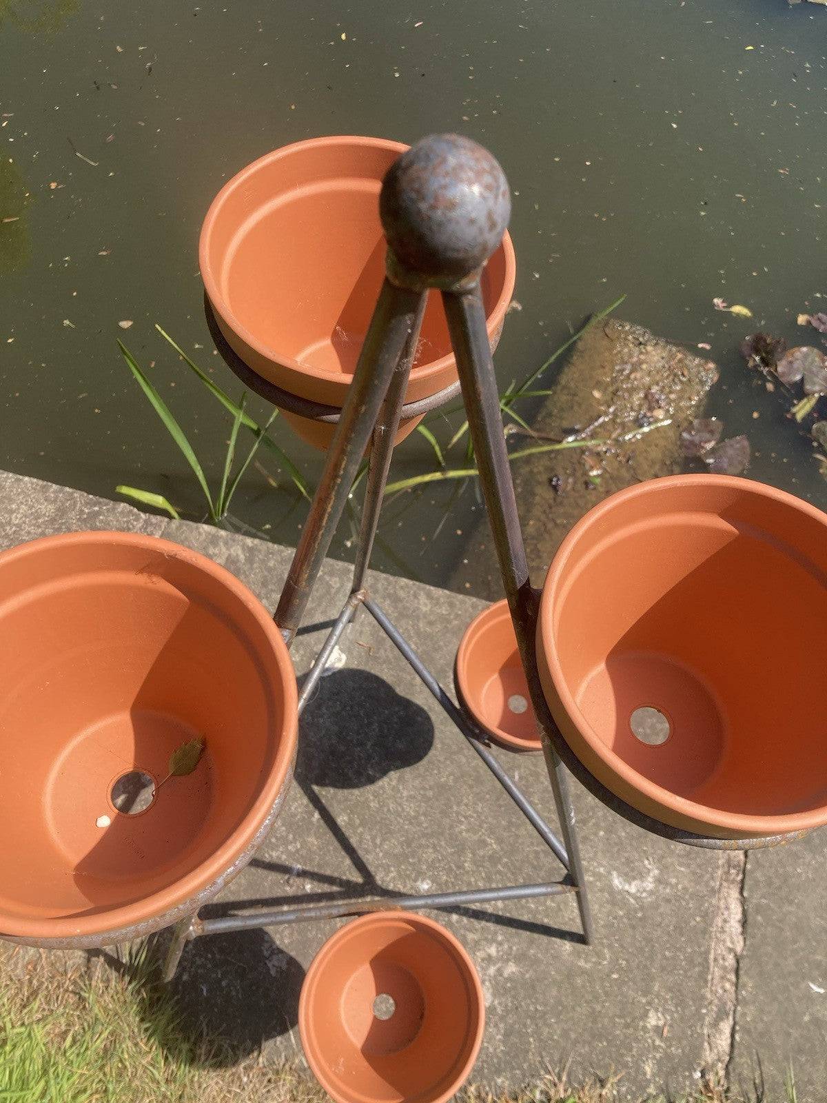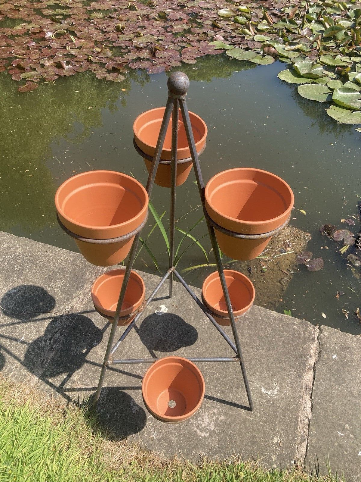 WROUGHT IRON METAL 6 POT PLANT STAND GARDEN ORNAMENT PLANTER