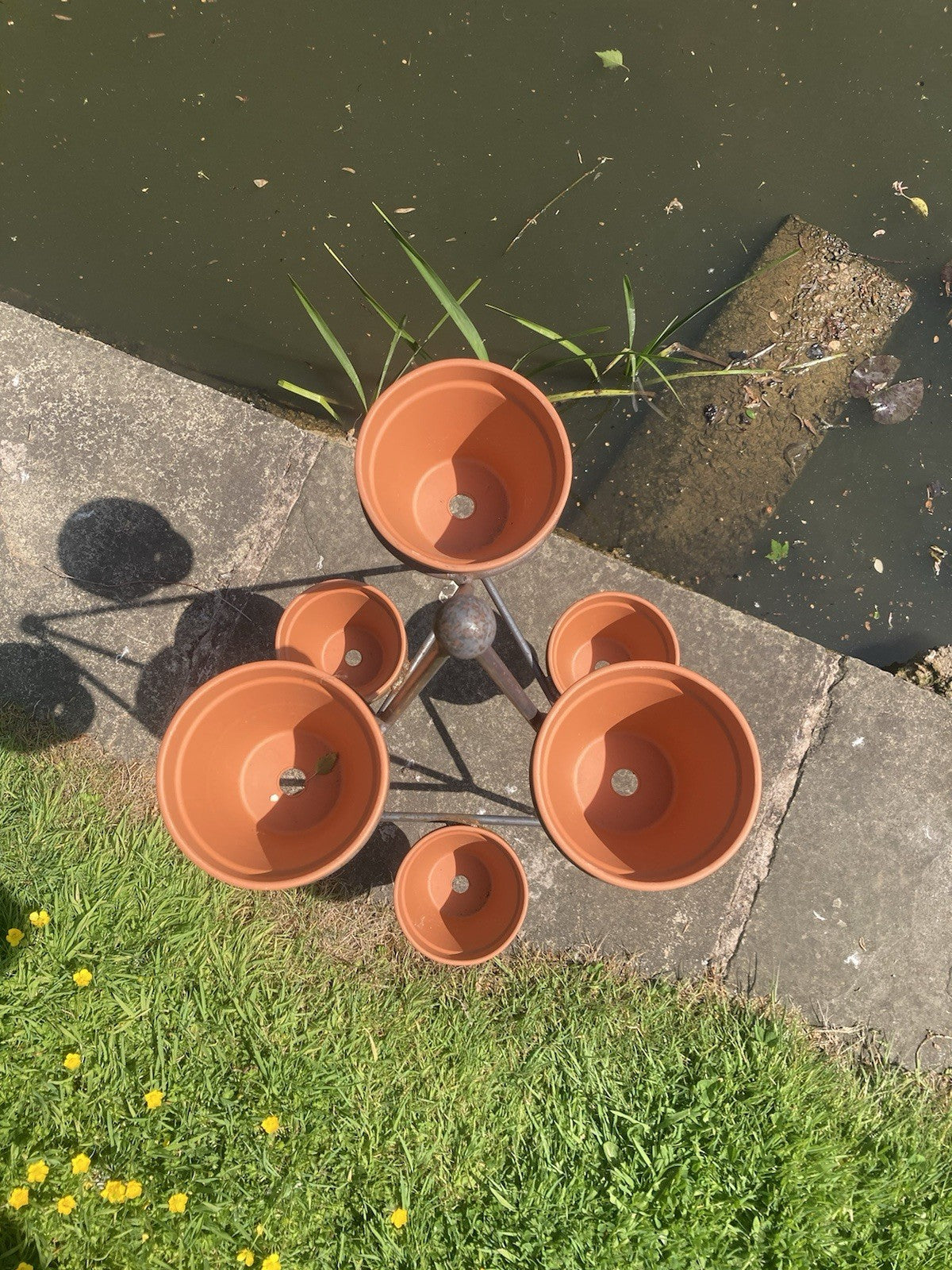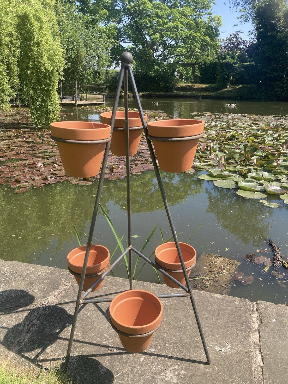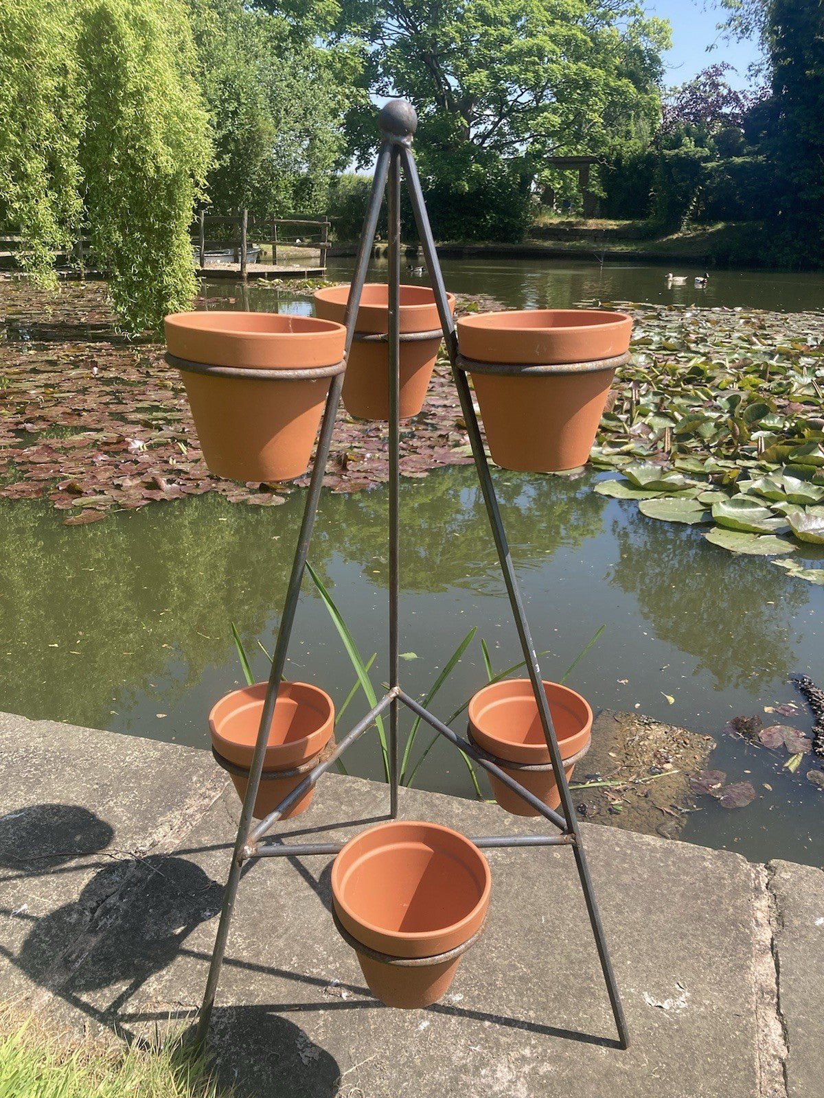 WROUGHT IRON METAL 6 POT PLANT STAND GARDEN ORNAMENT PLANTER